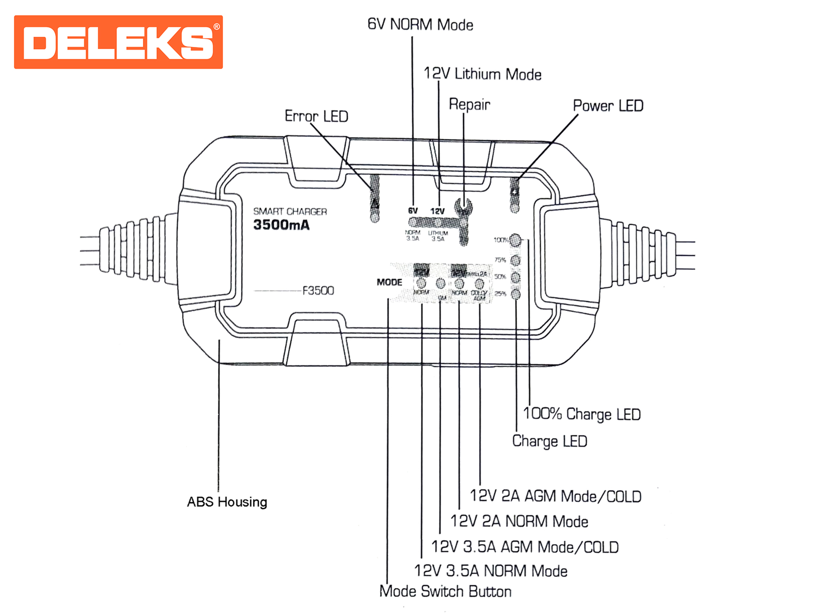 - Beveiliging tegen overbelasting, kortsluiting en polariteitsomkering.