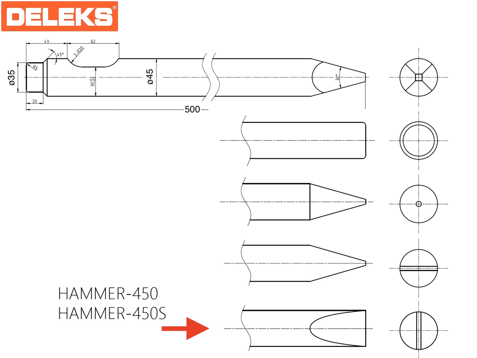 DELEKS® Horizontale platte beitel voor Hydraulische hamer.