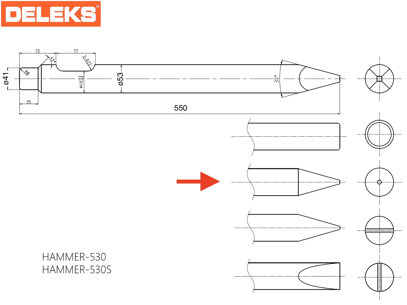 DELEKS® Kegelvormige beitel voor Hydraulische hamer.