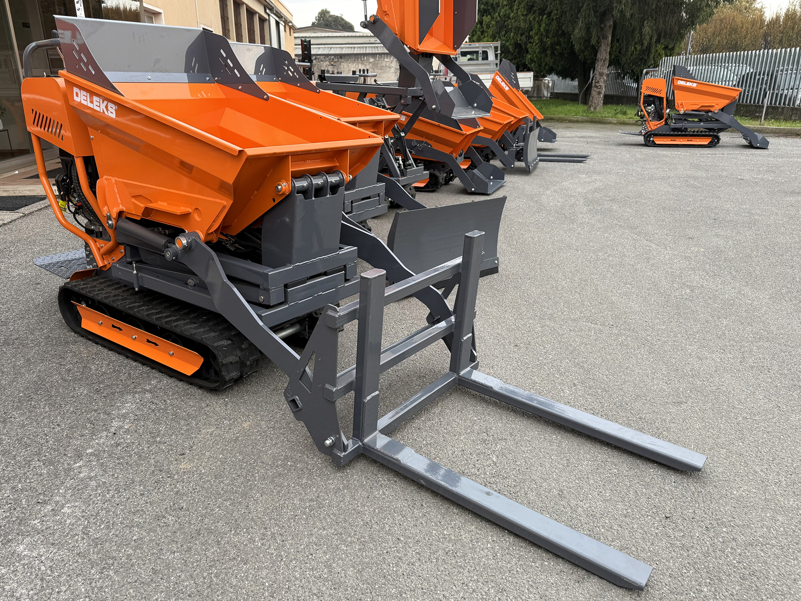 De DELEKS® vorken voor de V3000 en V3000H minidumpers zijn ontworpen voor het hanteren van pallets en compacte ladingen tot 120 kg. De vorken vervangen de standaardbak via een geboute bevestiging zonder structurele aanpassingen.