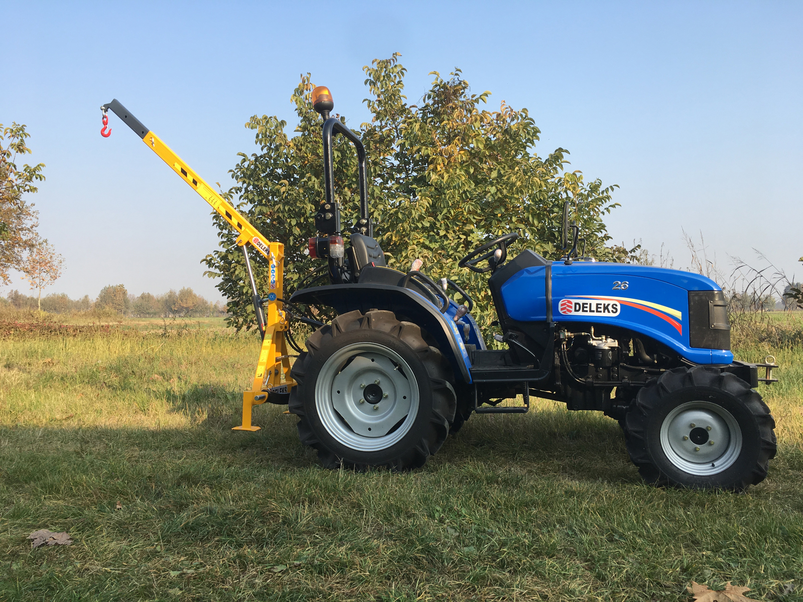 Hydraulic Crane For Compact Tractors KUBOTA, JOHN DEERE… DELEKS®- Arm can be extended in three steps.