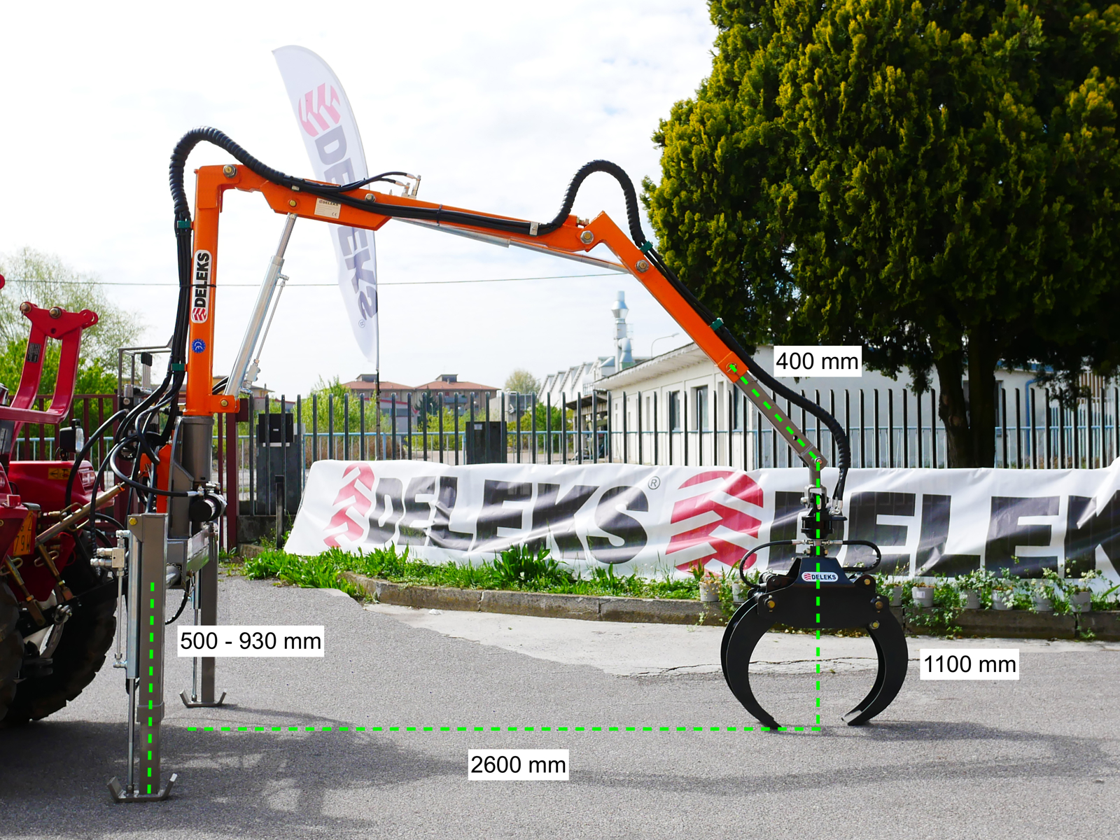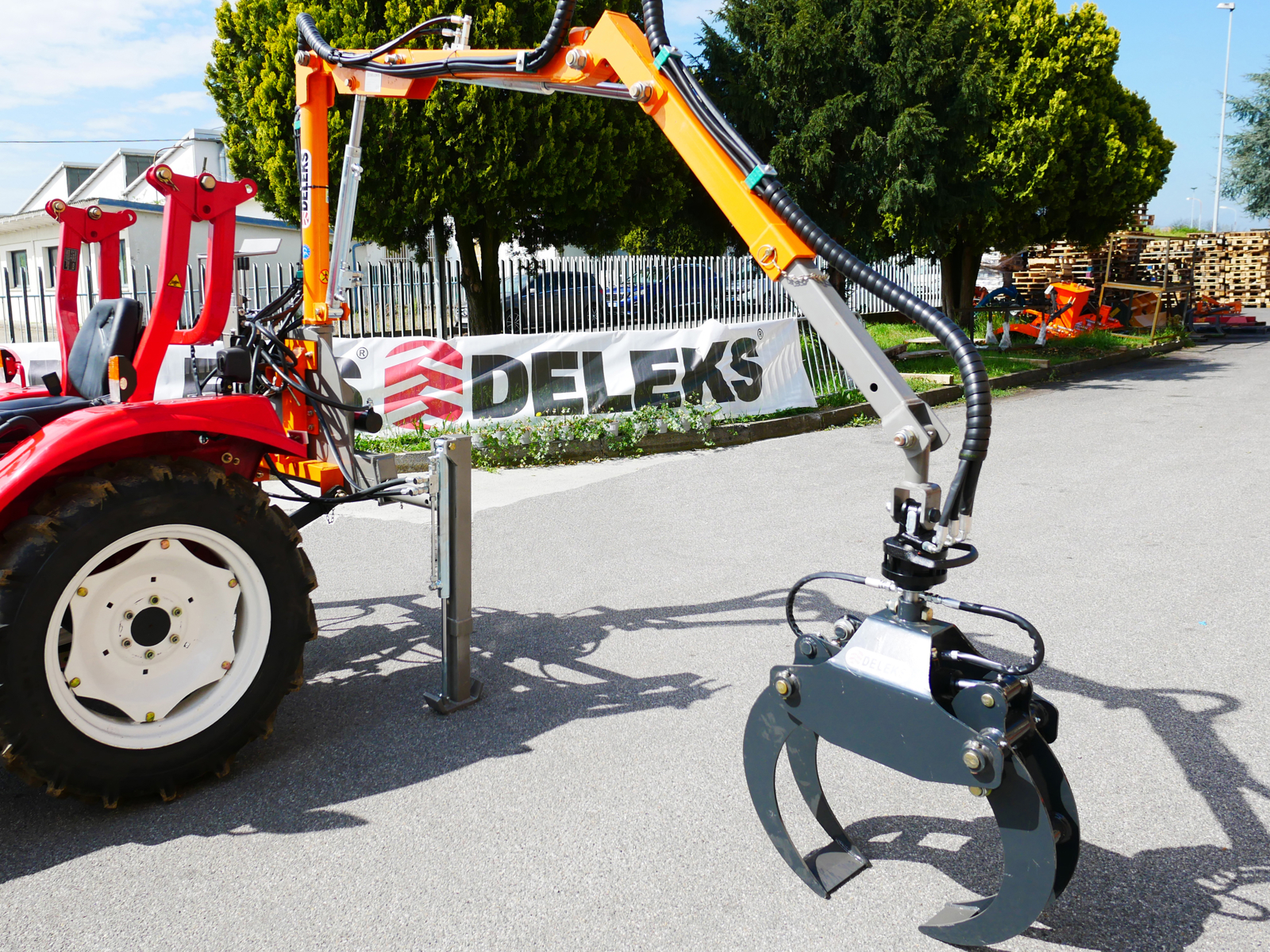 SLUITENBosbouwkraan inclusief houtklem voor achteraanbouw, geschikt voor tractoren vanaf 30 PK - DELEKS®- Alle hydraulische onderdelen "Made in Italy" - Houtgrijper DK 10 met 1t rotator van het merk Lombarda Ingranaggi GR10.