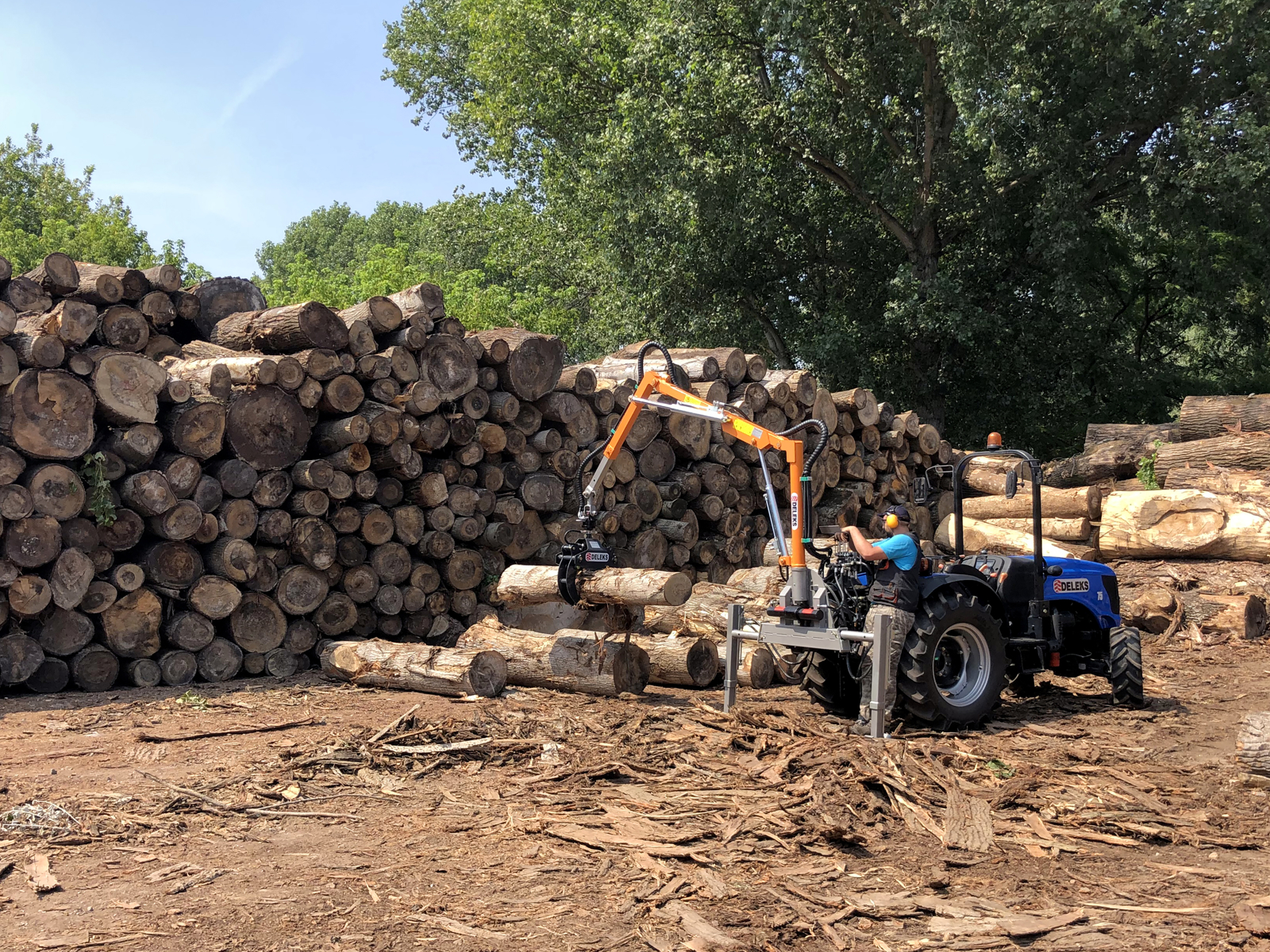 Hydraulische bosbouwkraan met houtgrijper voor tractoren