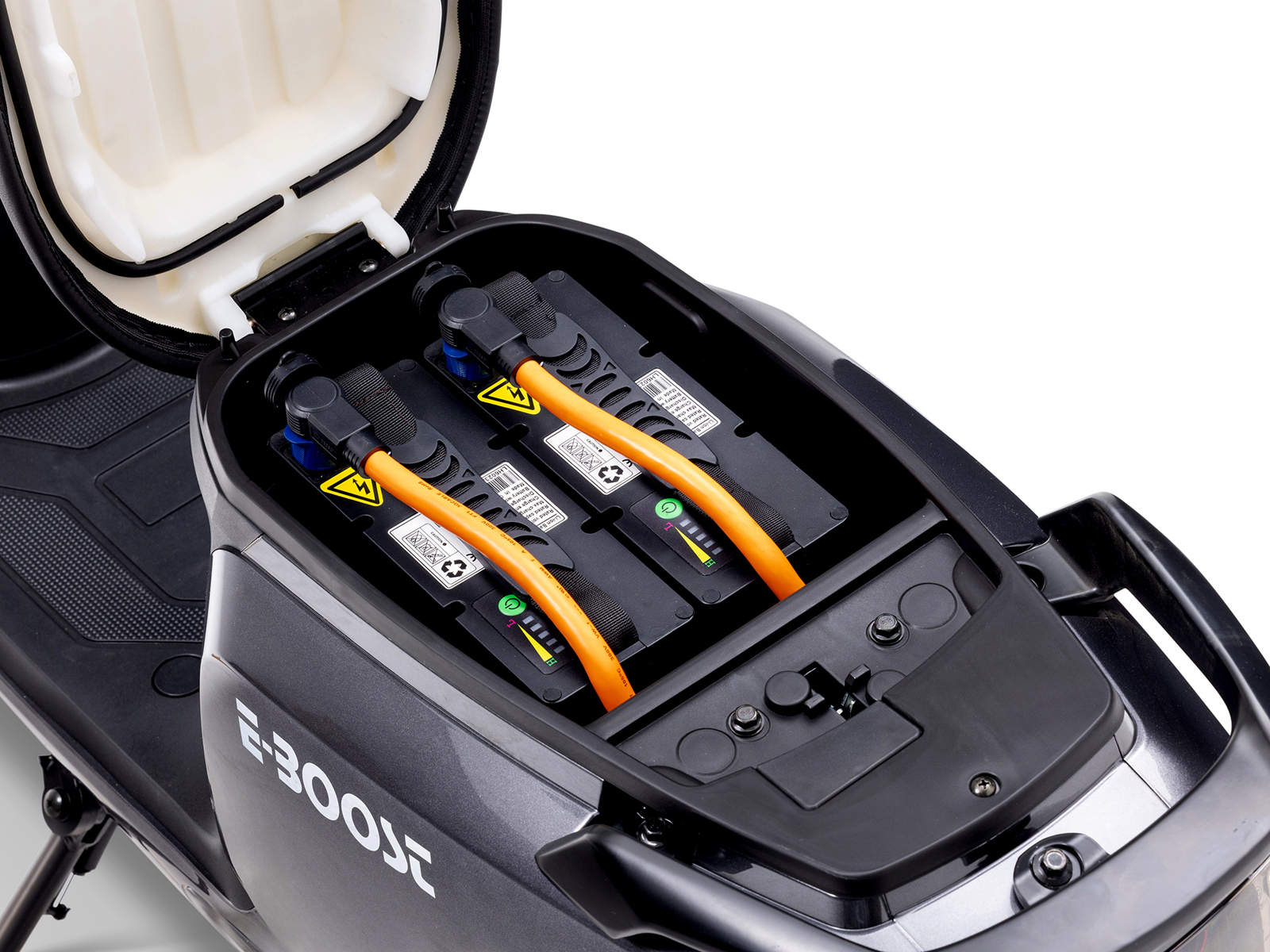 E-BOOST – the future of electric driving - Maximum speed 45km/h - 120km range with the optional second battery - Approved for 2 people.
