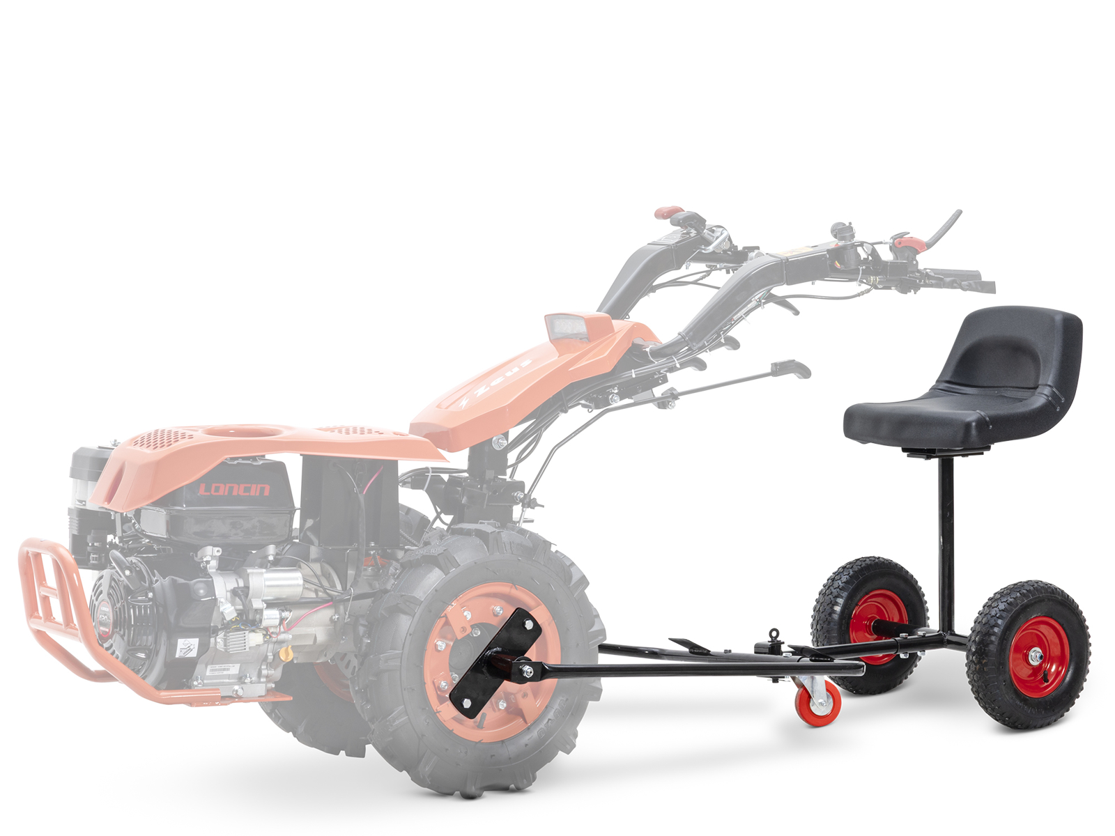 SLUITENDe DELEKS® Sulky-wagen is een accessoire dat de bestuurder in staat stelt comfortabel zittend te werken bij gebruik van de eenassige tractor in frontconfiguratie, waardoor ergonomie, comfort en controle tijdens langdurige werkzaamheden worden verbeterd.