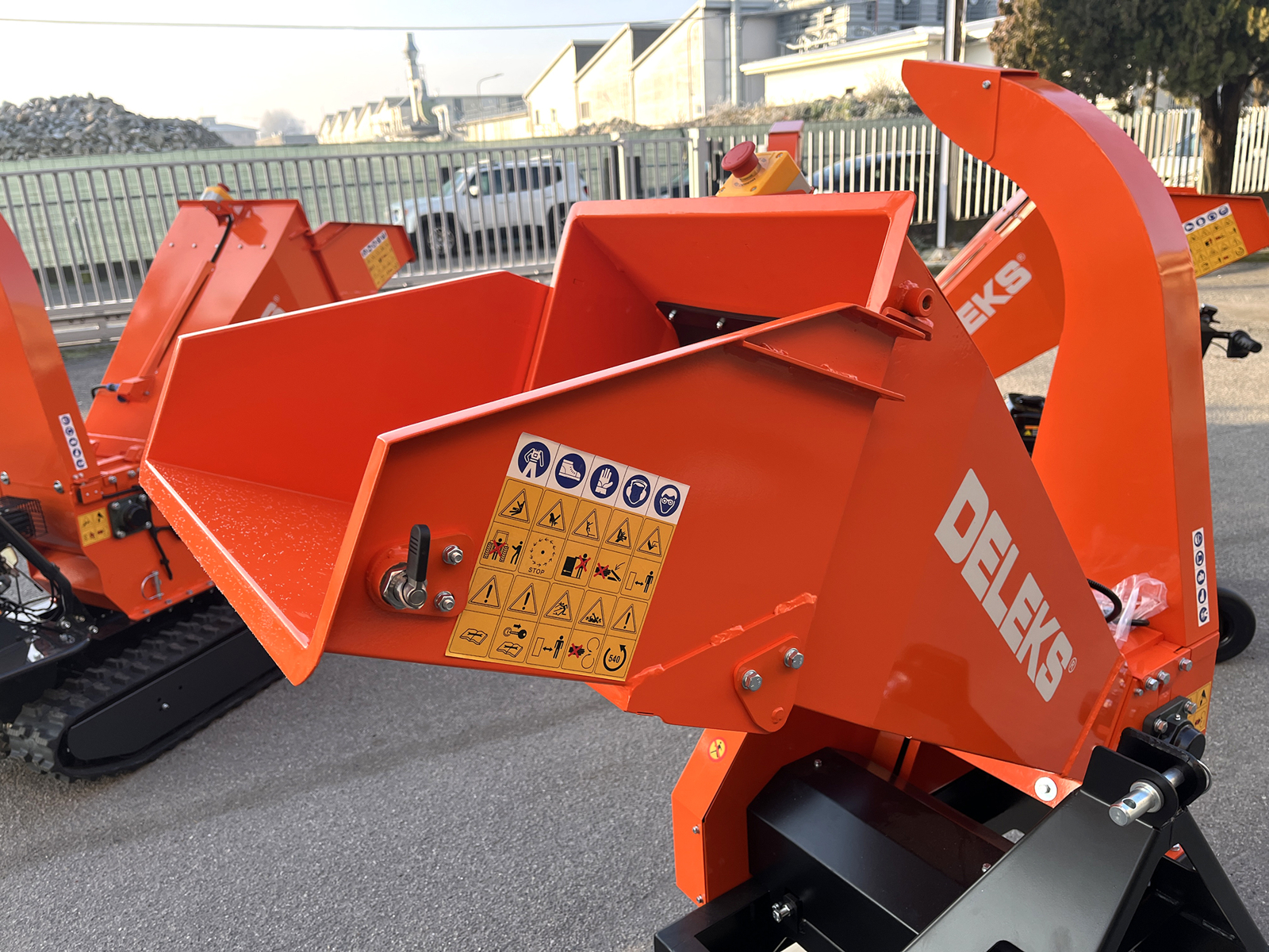 The machine is equipped with a mushroom-type emergency stop device that can be connected to the tractor, allowing immediate shutdown of the cutting system in case of emergency. Mechanical guards and safety devices are designed to ensure compliance with current safety regulations.