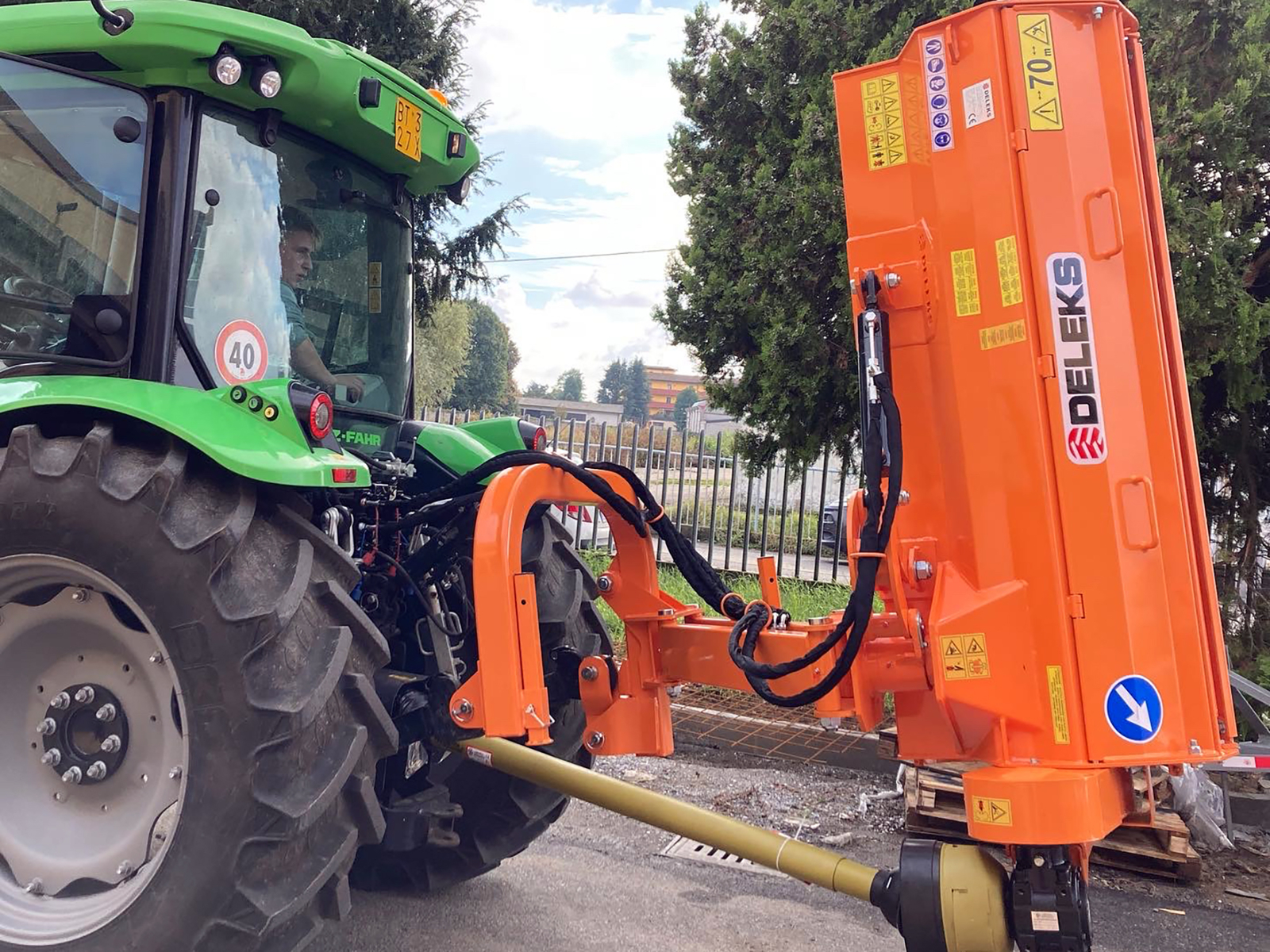 Pour les tracteurs de 70 à 110cv, comme par exemple Fiat, Same, New Holland, Deutz-Fahr, Massey Ferguson, John Deere, Case, Ford, Kubota M, Lamborghini, etc. Attelage 3 points universel de CAT 2 avec déport hydraulique, cardan de 180cm.