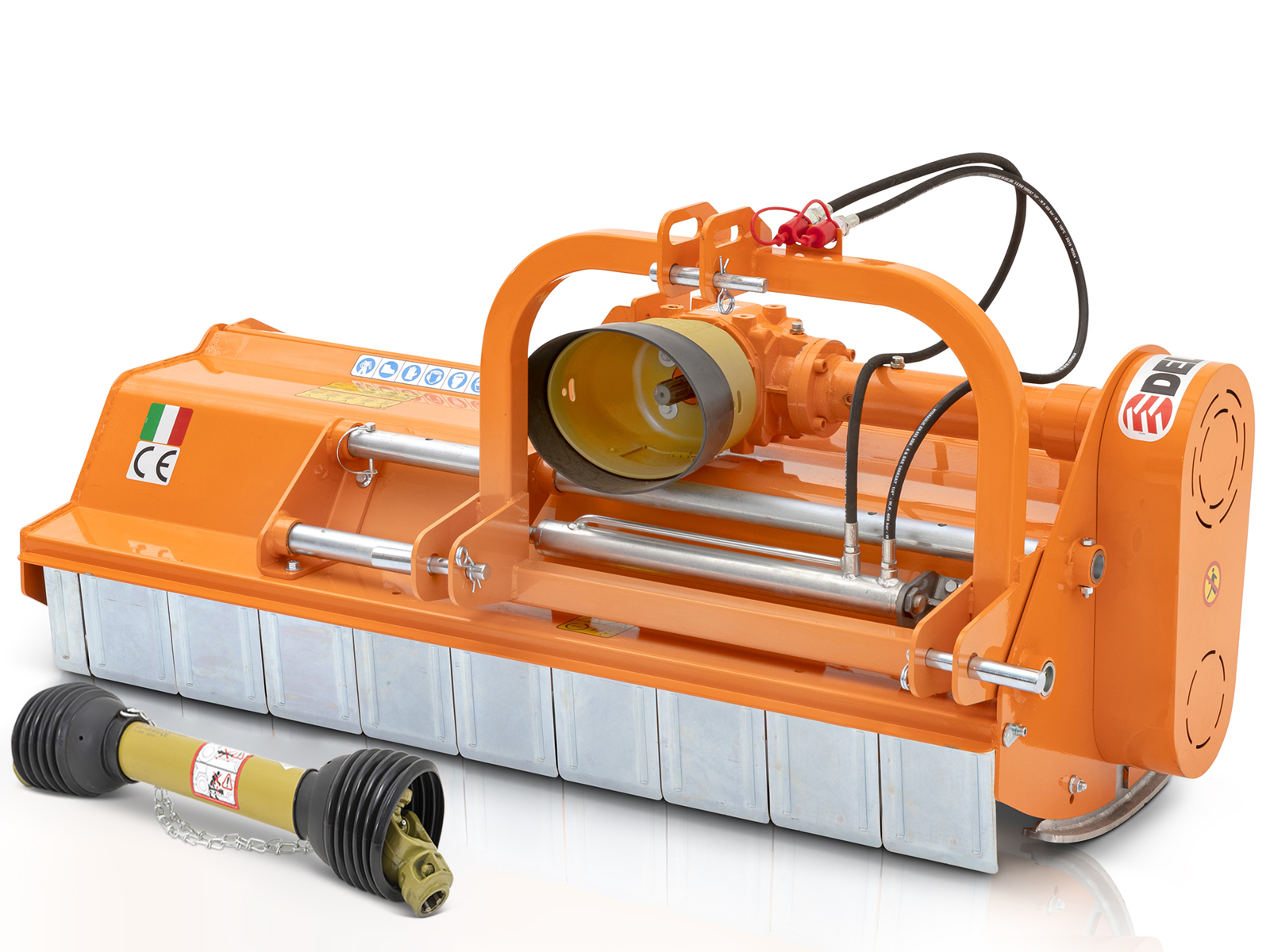 Shredder with hammers for orchard, vineyard, olive grove and uncultivated areas. Professional Flail Mower with Hydraulic side shift.