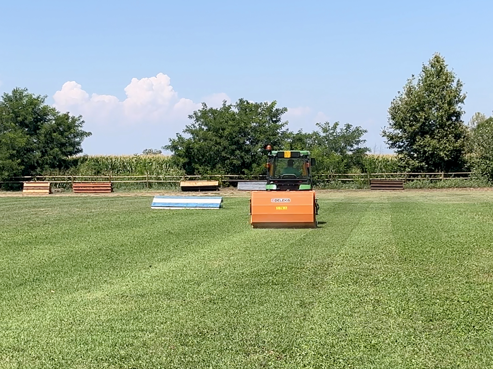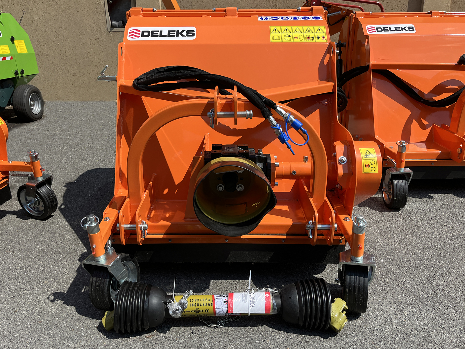 DELEKS® PANDA-90 professionele maaier met hydraulische opvangbak – geschikt voor het maaien van sportvelden of wijngaarden. Aftakas met veiligheidsbout.