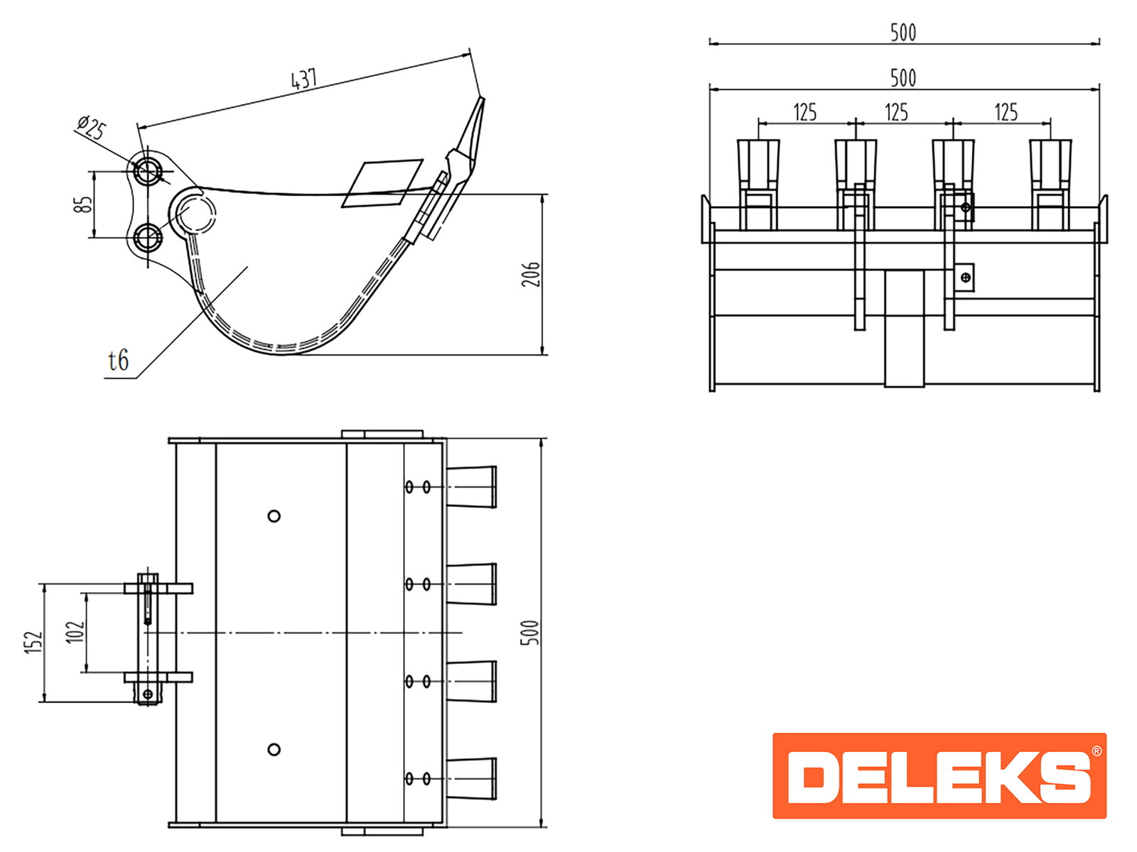 GODET 50cm pour DELEKS®S100 et KUBOTA K008-3, U10-3, K008-5, U10-5 mini-pelles.