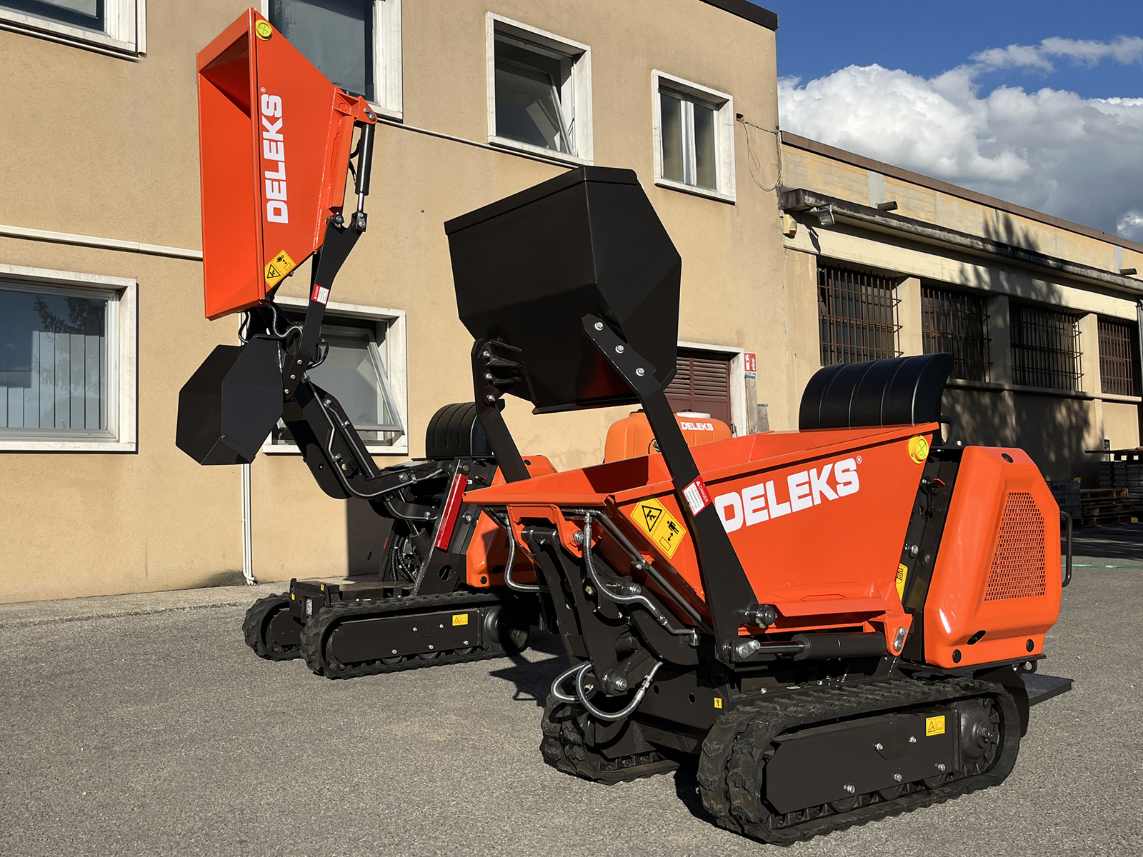 DELEKS® M8000-BS Mini dumper chenille auto chargeuse, décharge haut, transmission hydrostatique, plate-forme opérateur, moteur Briggs&Stratton, démarreur électrique.