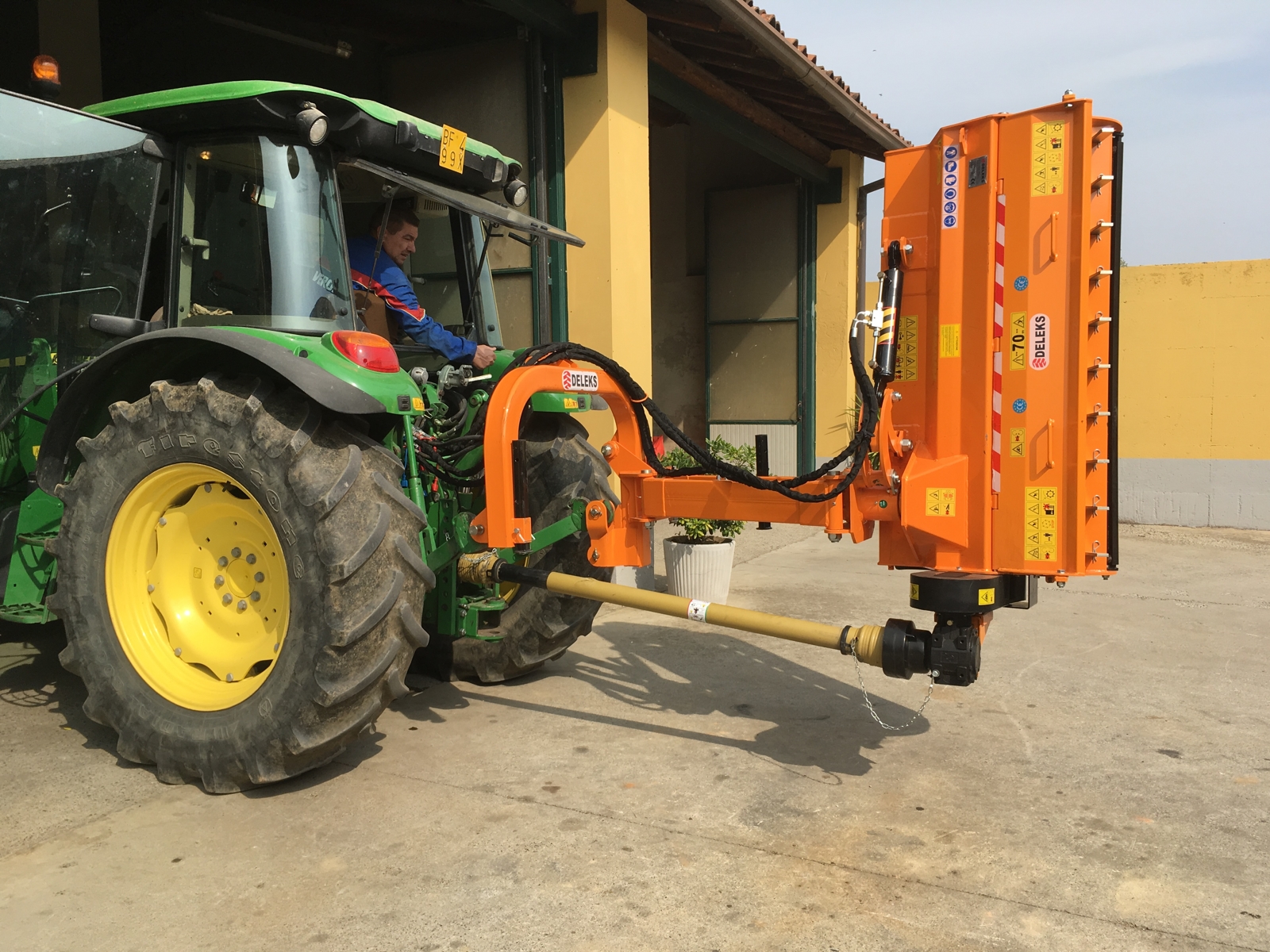Pour les tracteurs de 50 à 90cv, comme par exemple Fiat, Same, New Holland, Deutz-Fahr, Massey Ferguson, John Deere, Case, Ford, Kubota, Lamborghini, etc. Attelage 3 points universel de CAT 2 avec déport hydraulique, cardan de 180cm CE.