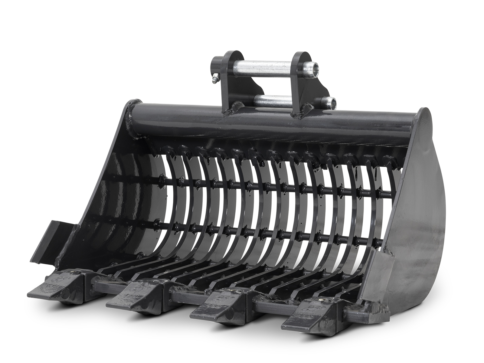 Godet pour l'épierrage, le tri ou la séparation de matériaux pour mini-pelles DELEKS® S100 et KUBOTA S100, K008-3, U10-3, K008-5, U10-5. Principalement utilisé pour le dragage des cours d'eau, le tri des déchets de construction lors de travaux de démolition, la préparation des sols avant plantation ou aménagement paysager, etc...