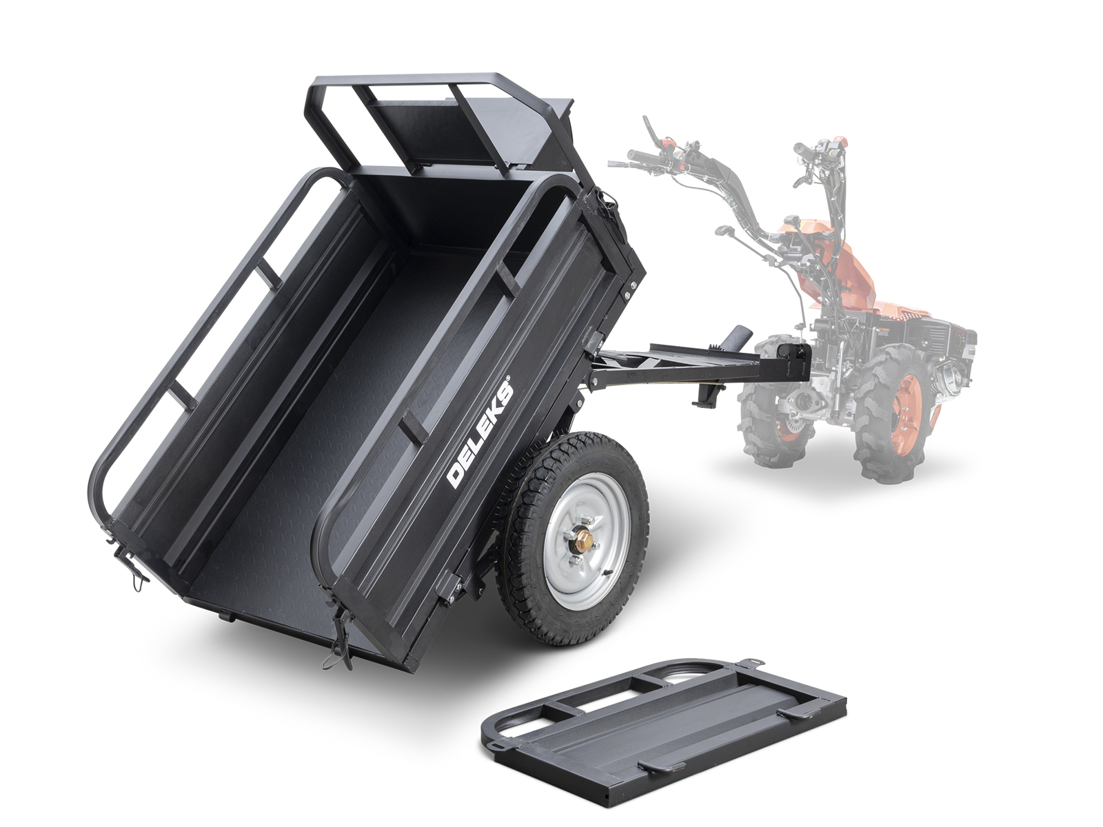 DELEKS® Remorque pour motoculteur. Compatible avec les motoculteurs BCS, Ferrari et Pasquali.