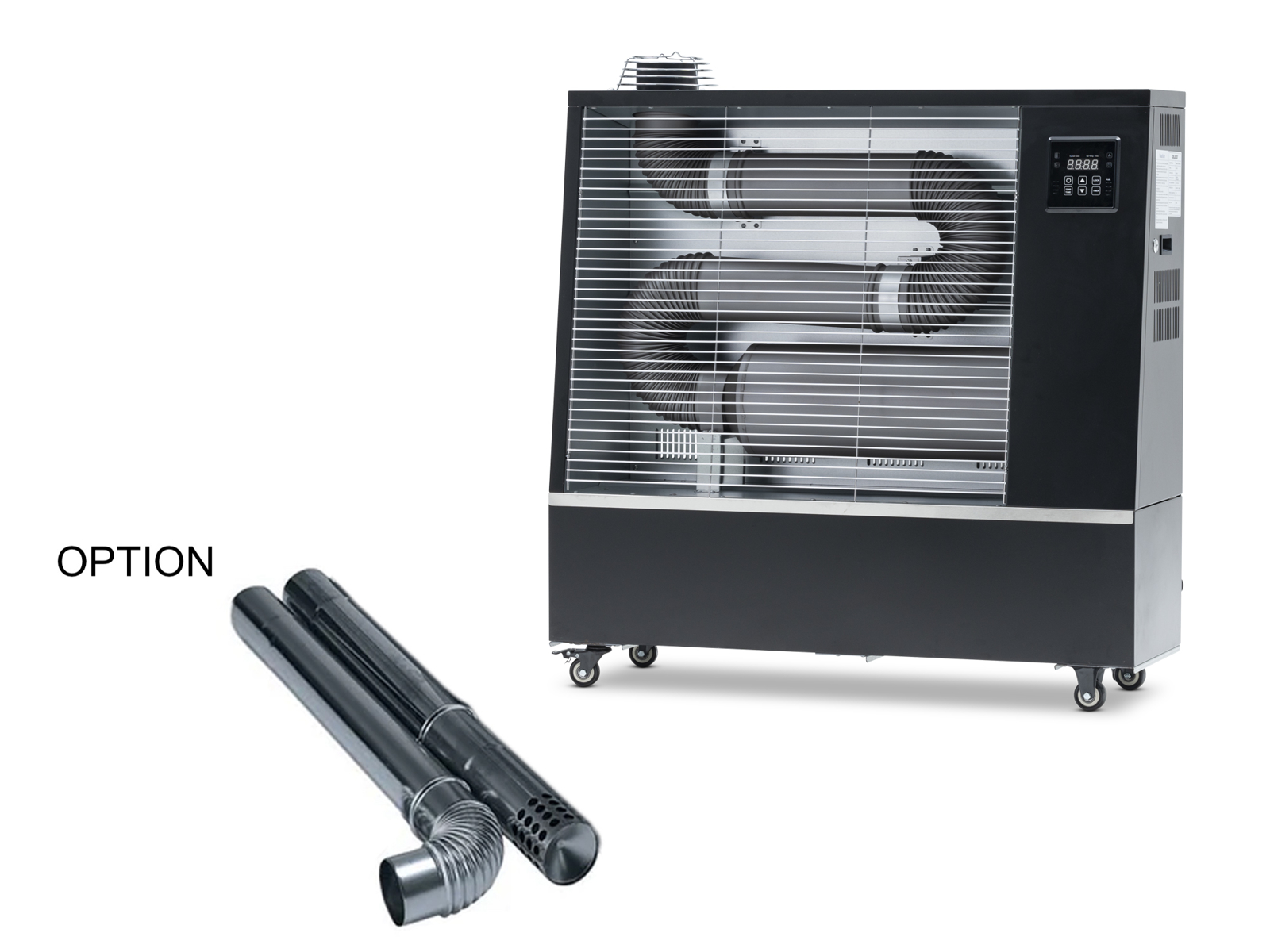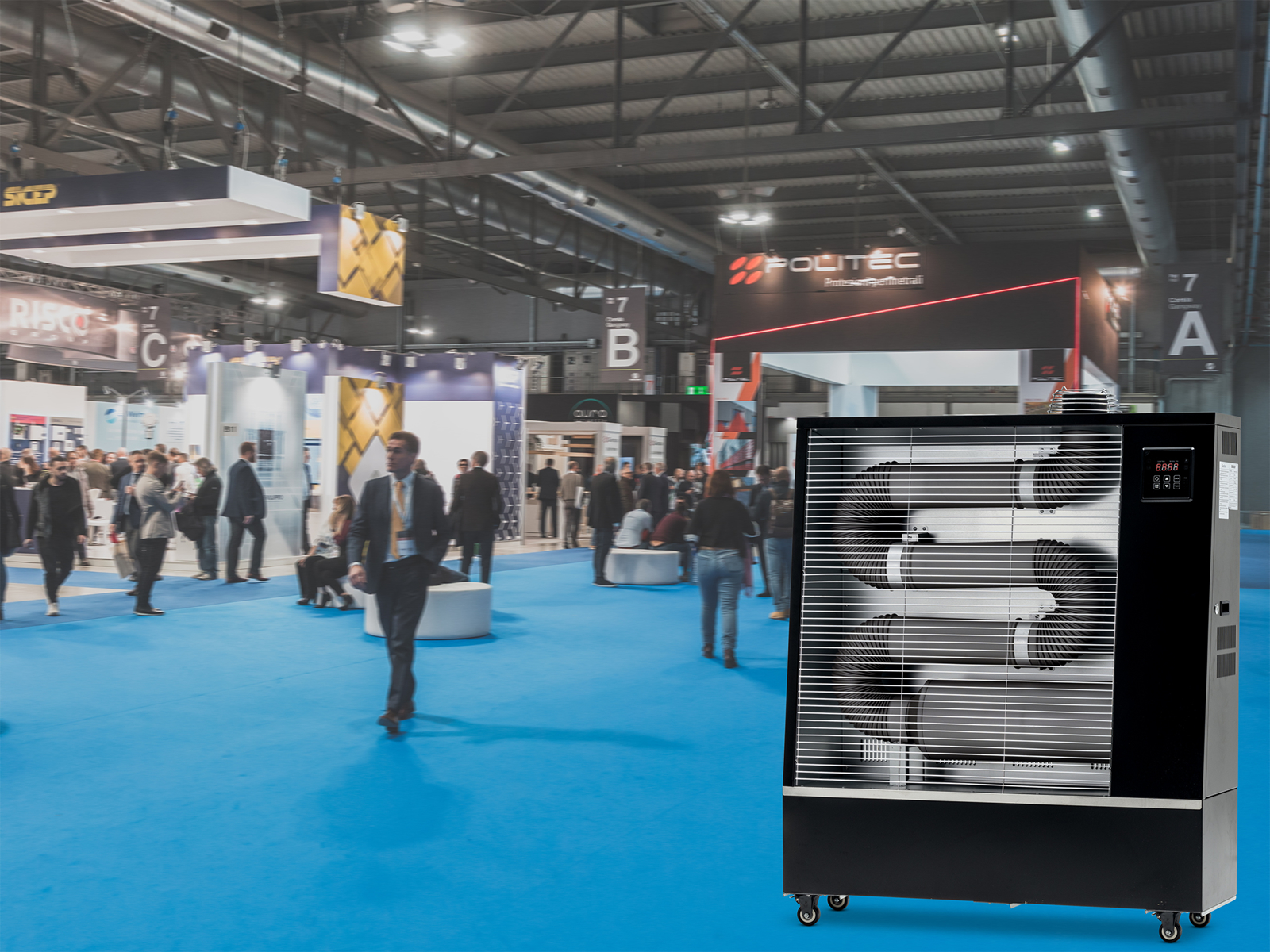 Système de chauffage innovant pour les espaces fermés ventilés (ateliers mécaniques, zones commerciales, industrielles, agricoles, entrepôts, gymnases) et en plein air comme dans les serres, terrasses, chantiers...
