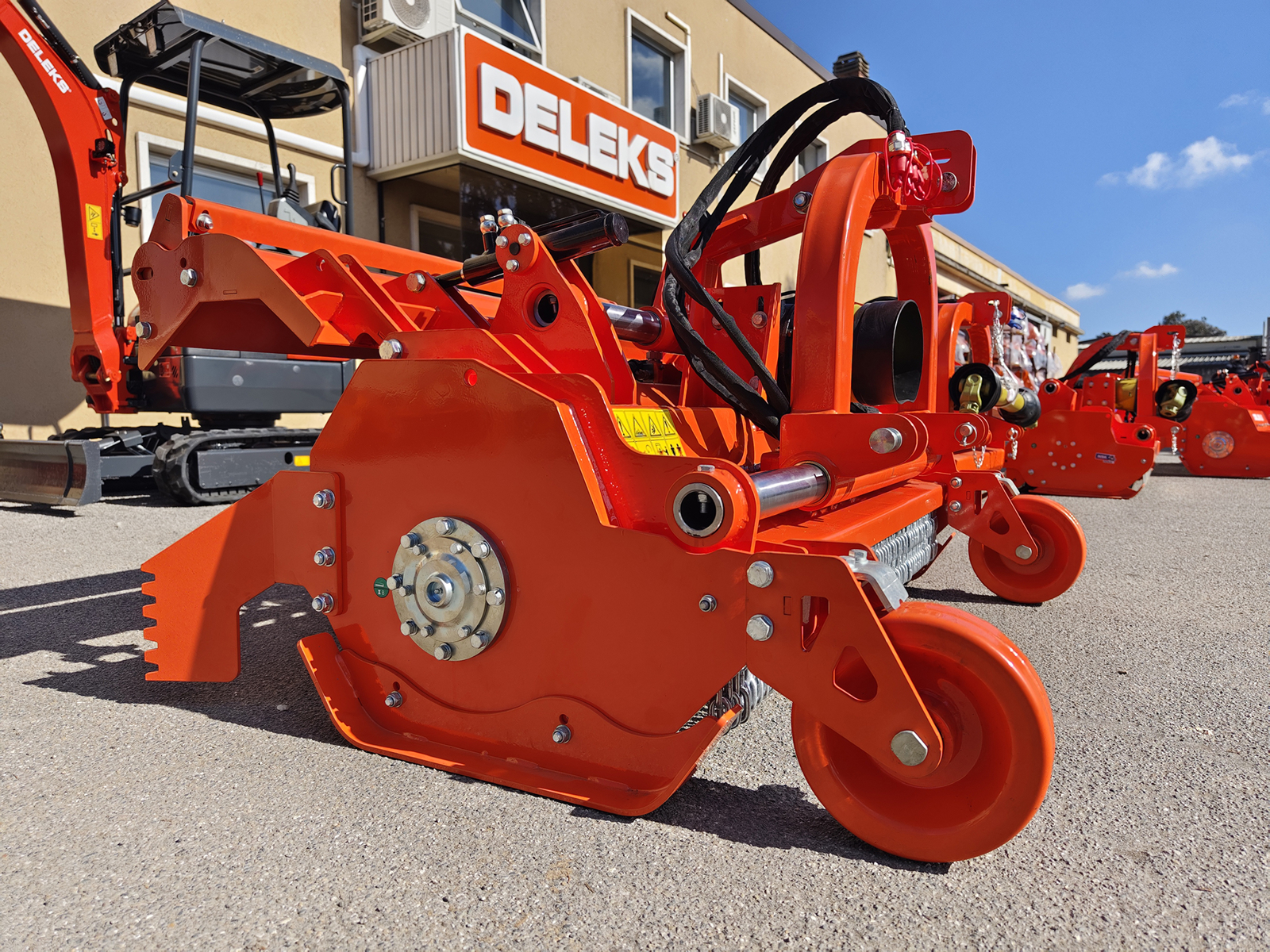 Broyeur de série lourde DELEKS® GORILLA-150 idéal pour le broyage sur les résidus de taille de vignes, vergers, oliveraies et bois boisé jusqu’à Ø 15 cm. Déplacement hydraulique et cardan avec boulon de sécurité.