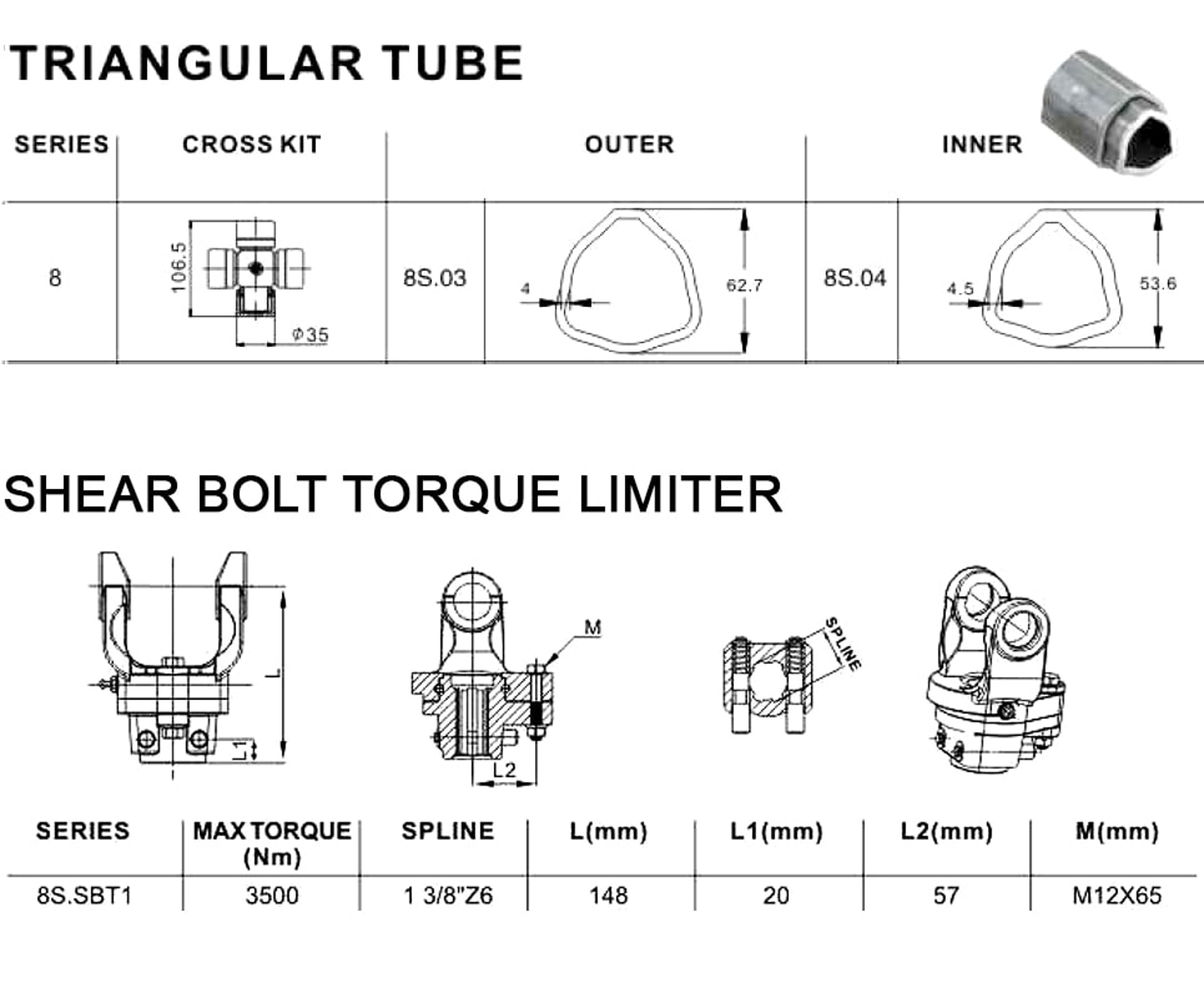 Cardan agricole CAT-8 1300 + Boulon