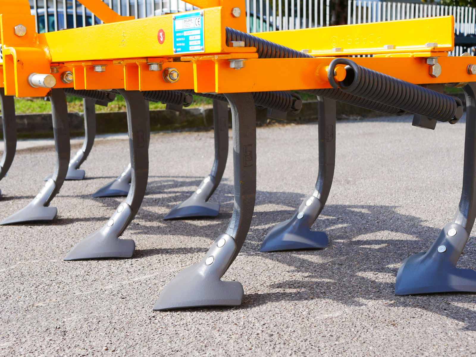 Cultivateur 9 dents à ressort DELEKS® pour tracteur agricole - Largeur de 217cm - Pattes d'oie ou dents droites