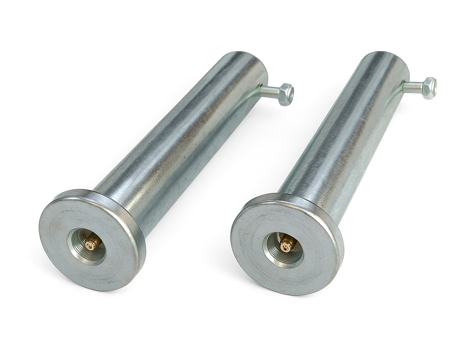 SLUITENSet van twee ø40 mm pennen voor minigraverarm met S380-koppeling, ontworpen voor de kinematische verbinding van werktuigen zoals bakken, rippers, harken, grondboren en andere compatibele uitrustingen. De pennen zijn vervaardigd door precisiebewerking van hoogsterktestaal, met geslepen oppervlakken voor optimale coaxialiteit, een uniforme afwerking en minder wrijving in de draaipunten.