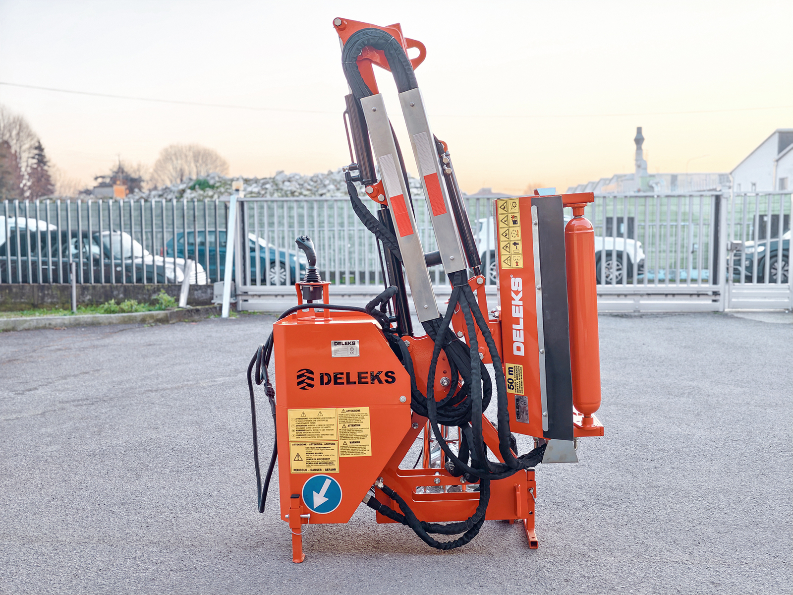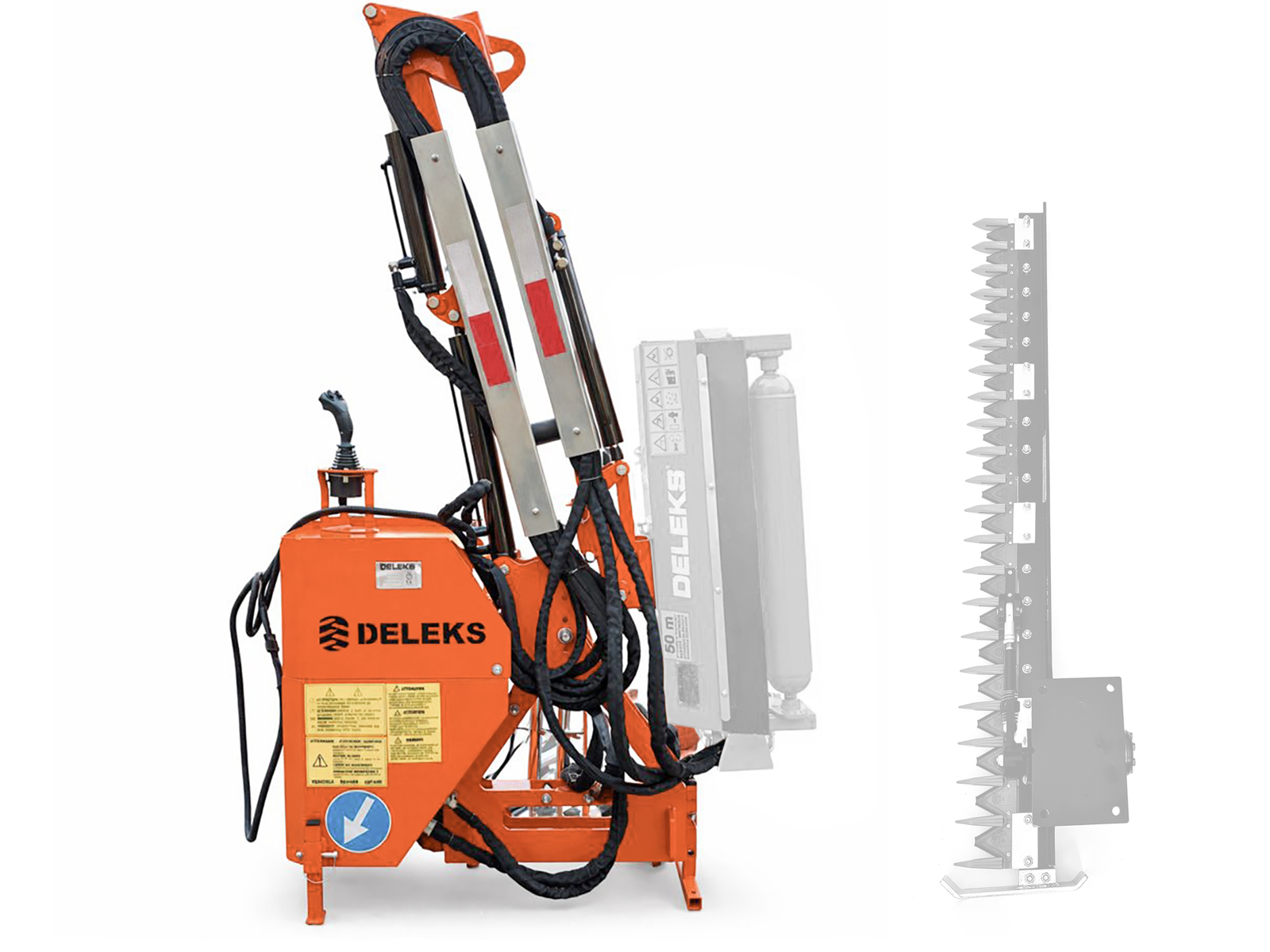 FERMERBras débroussailleuse hydraulique porté DELEKS® AIRONE, Épareuse hydraulique portée compatible avec tracteurs à relevage 3 points Cat. 1, prévu pour têtes de broyage de 60–80–100 cm ou barres taille-haies de 130–160–180 cm. Joystick de commande et pompe PTO inclus.