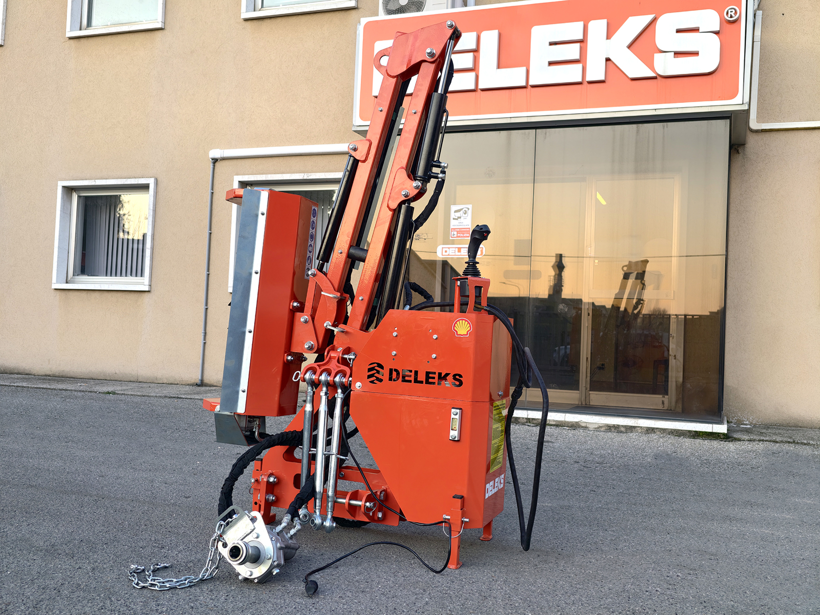Bras débroussailleuse hydraulique porté DELEKS® AIRONE, Épareuse hydraulique portée compatible avec tracteurs à relevage 3 points Cat. 1, prévu pour têtes de broyage de 60–80–100 cm ou barres taille-haies de 130–160–180 cm. Joystick de commande et pompe PTO inclus.