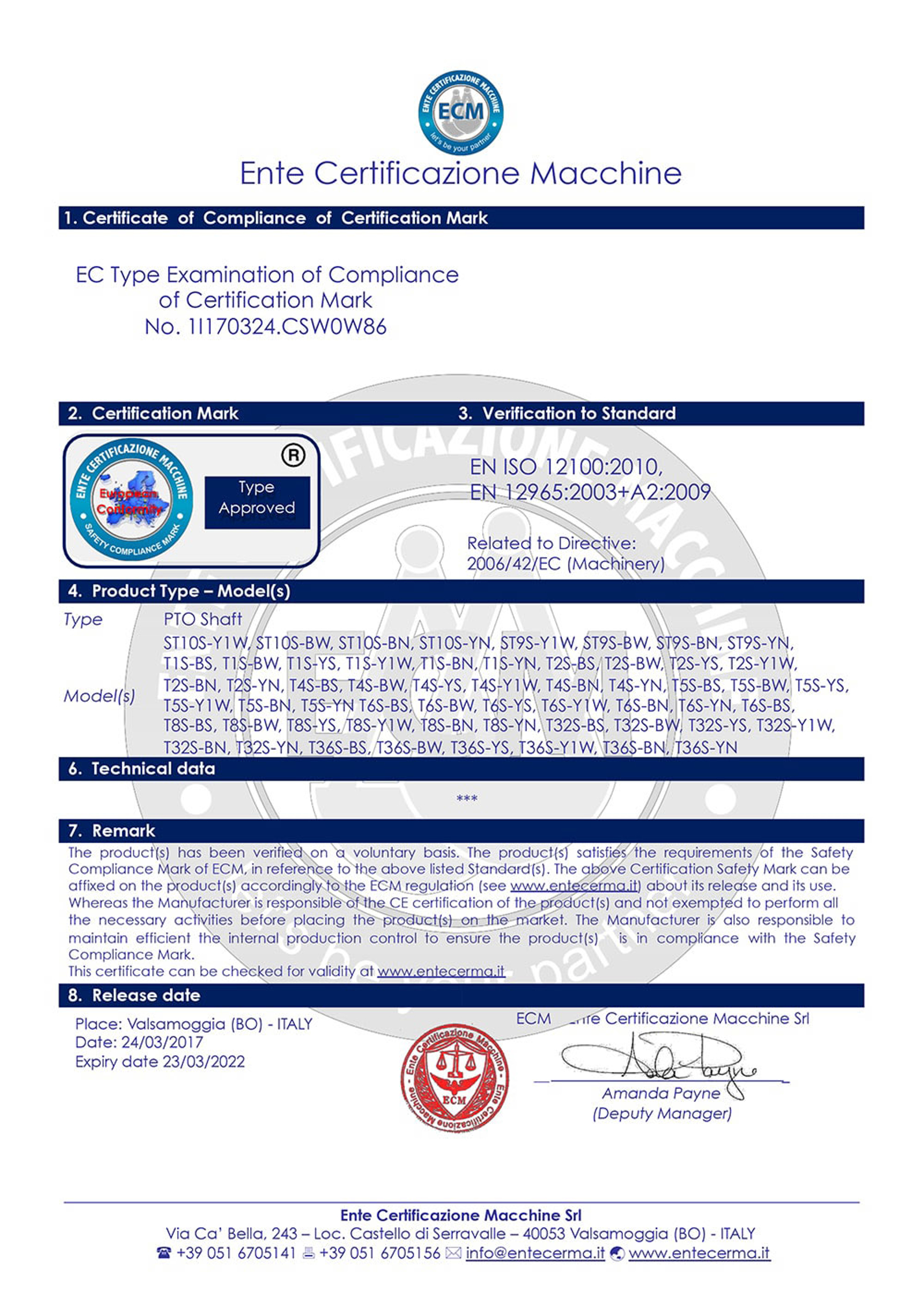 Certification ECM Ente Certificazione Macchine (Modena - Italie)