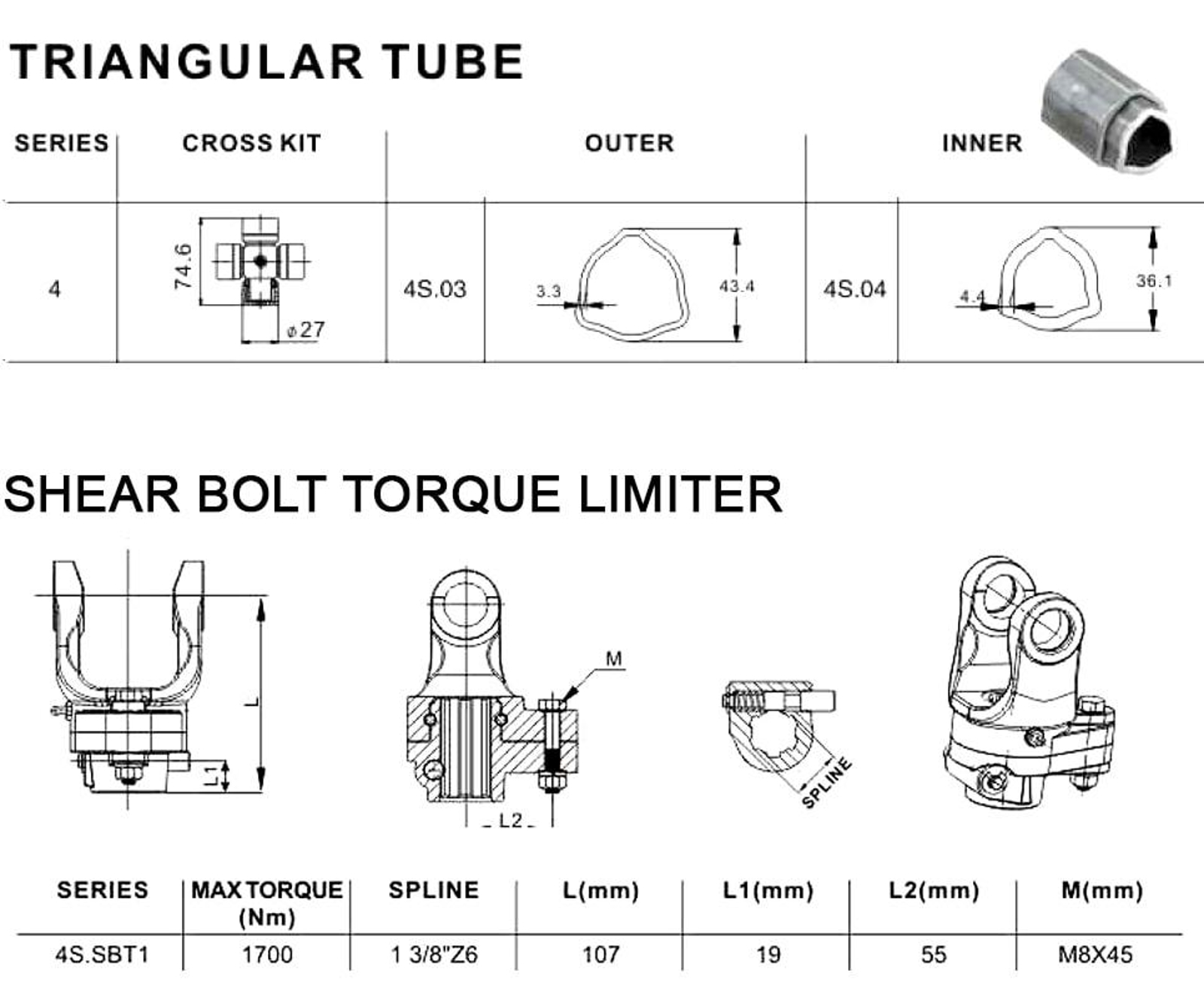 Cardan agricole CAT-4 600 + Boulon