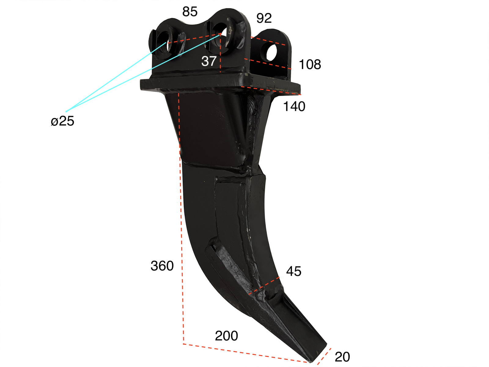 Grâce à son profil fin et à sa courbure, ce ripper concentre la force de la mini-pelle en un seul point, augmentant considérablement la capacité de pénétration par rapport à un godet standard.