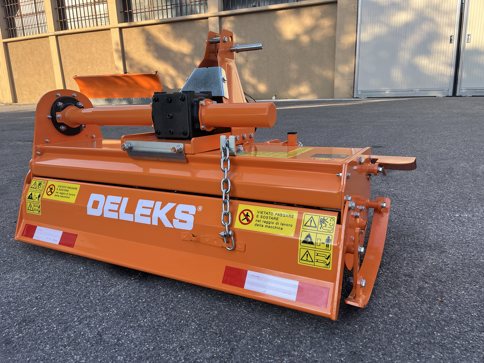 Rotovator léger DELEKS® DFM-125 pour tracteurs de 18 à 45cv, comme HollandBoomer 30-35, John Deere 2-3, Kubota, Iseki, Yanmar, Mahindra, Solis, Mitsubishi, Ferrari, Pasquali, Goldoni, Branson, ect.