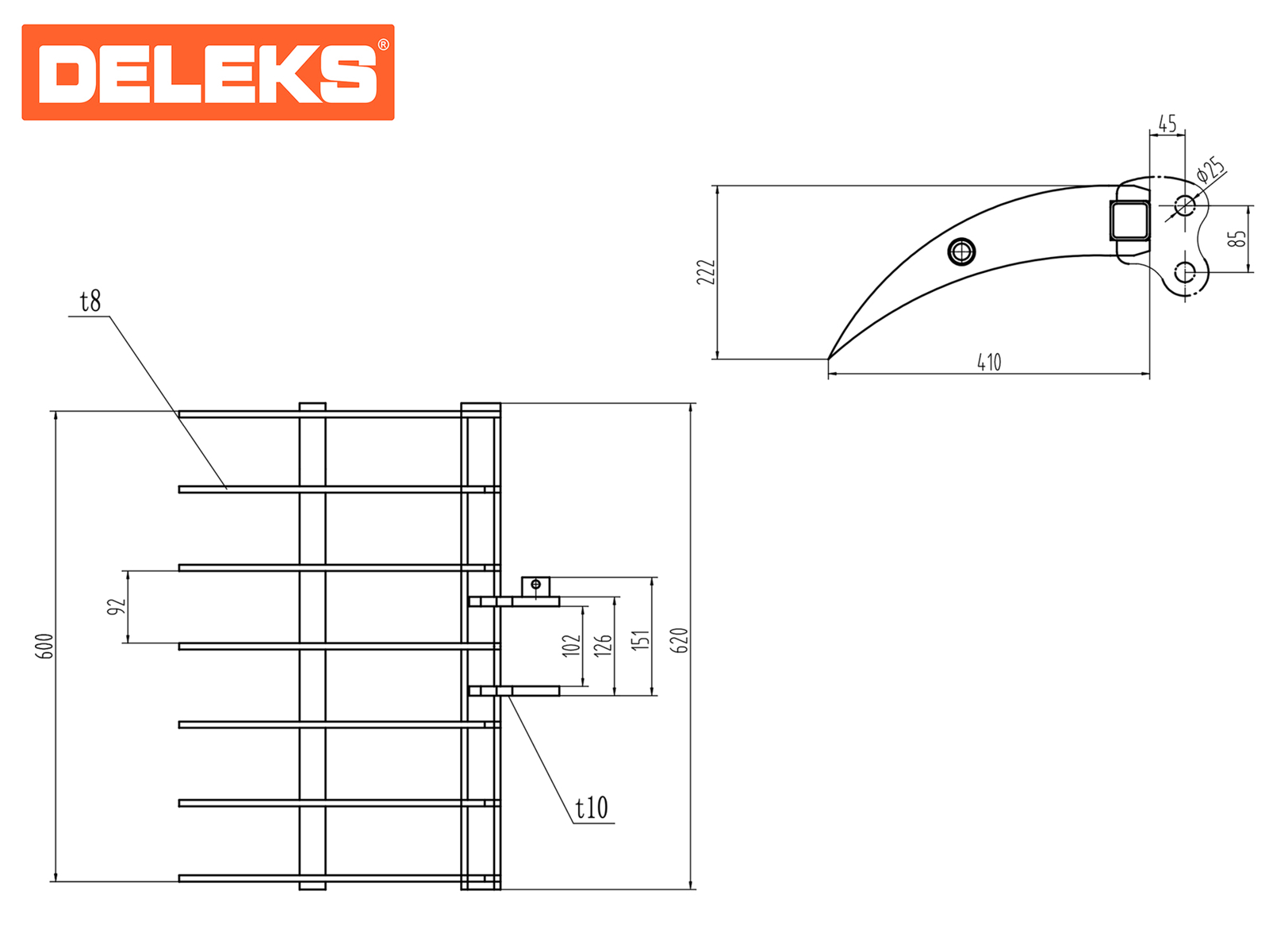 Le godet râteau / multiripper DELEKS® de 60 cm pour mini-pelles est un accessoire professionnel destiné au nettoyage du sol, au décompactage léger et à la sélection des matériaux, compatible avec DELEKS® S100 et Kubota K008-3, U10-3, K008-5, U10-5.