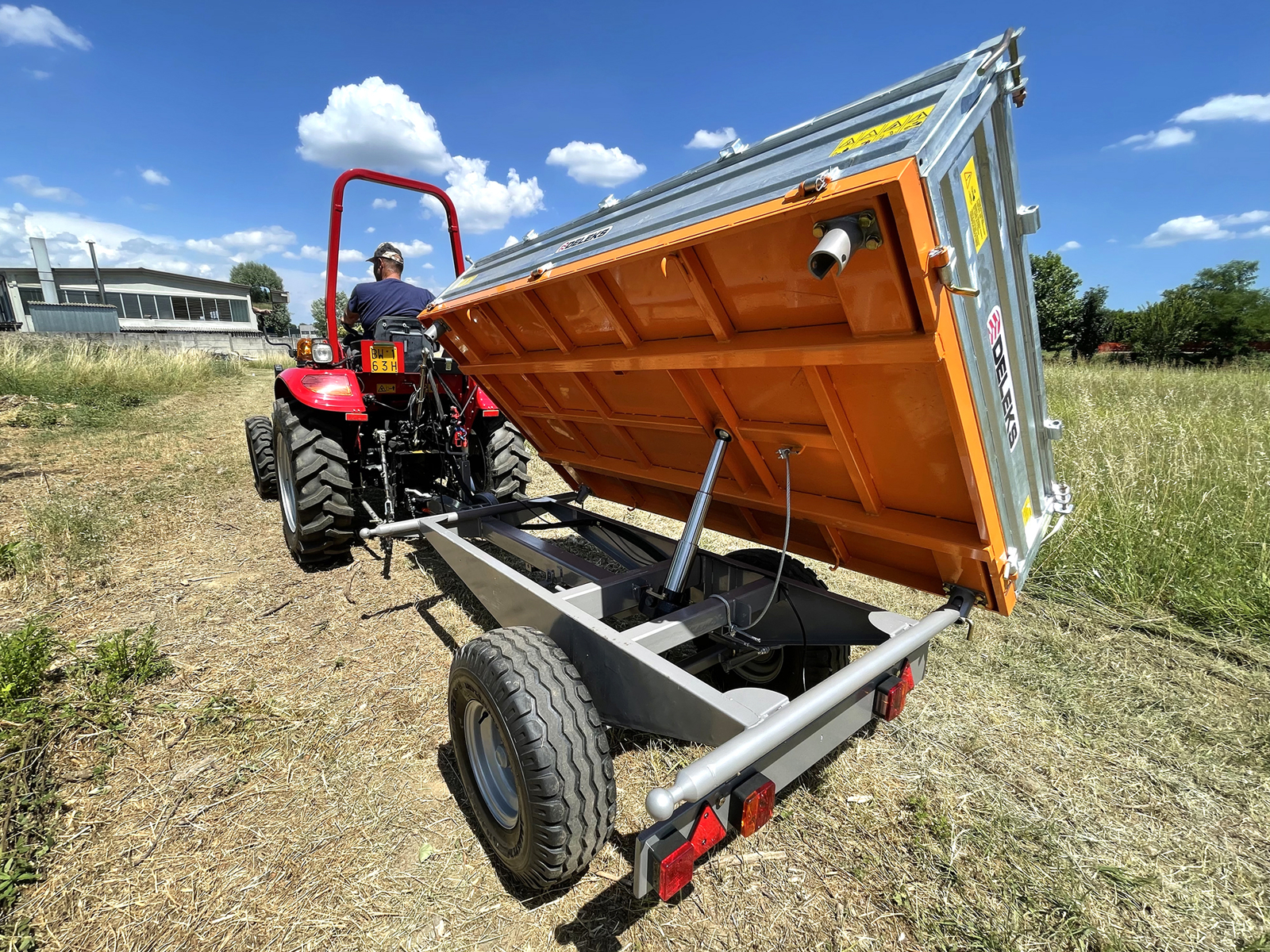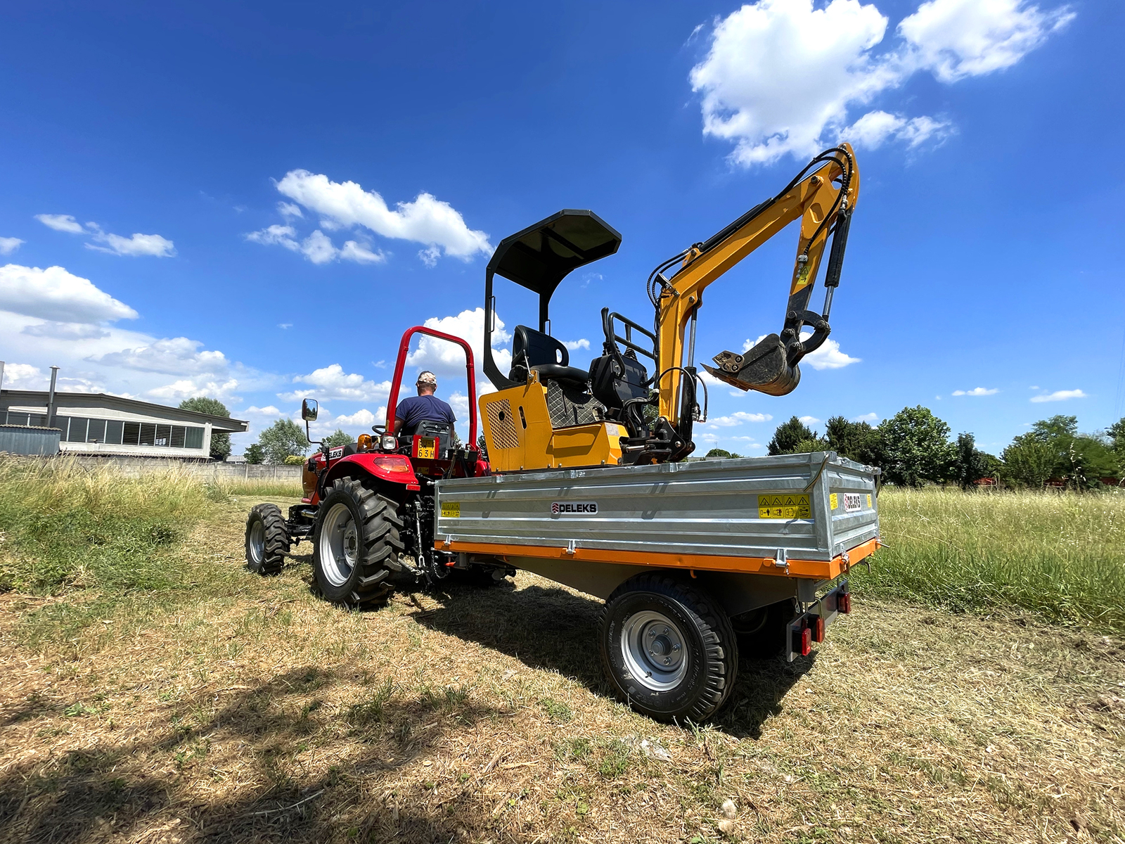 RM14-T3 aanhangwagen met één as - twee wielen - voor compacte tractoren met 20-70pk zoals Valpadana, Renault, Massey Ferguson, New Holland Boomer, New Holland Boomer. Valpadana, Renault, Massey Ferguson, New Holland Boomer, Antonio Carraro Tigre, John Deere 2 series.