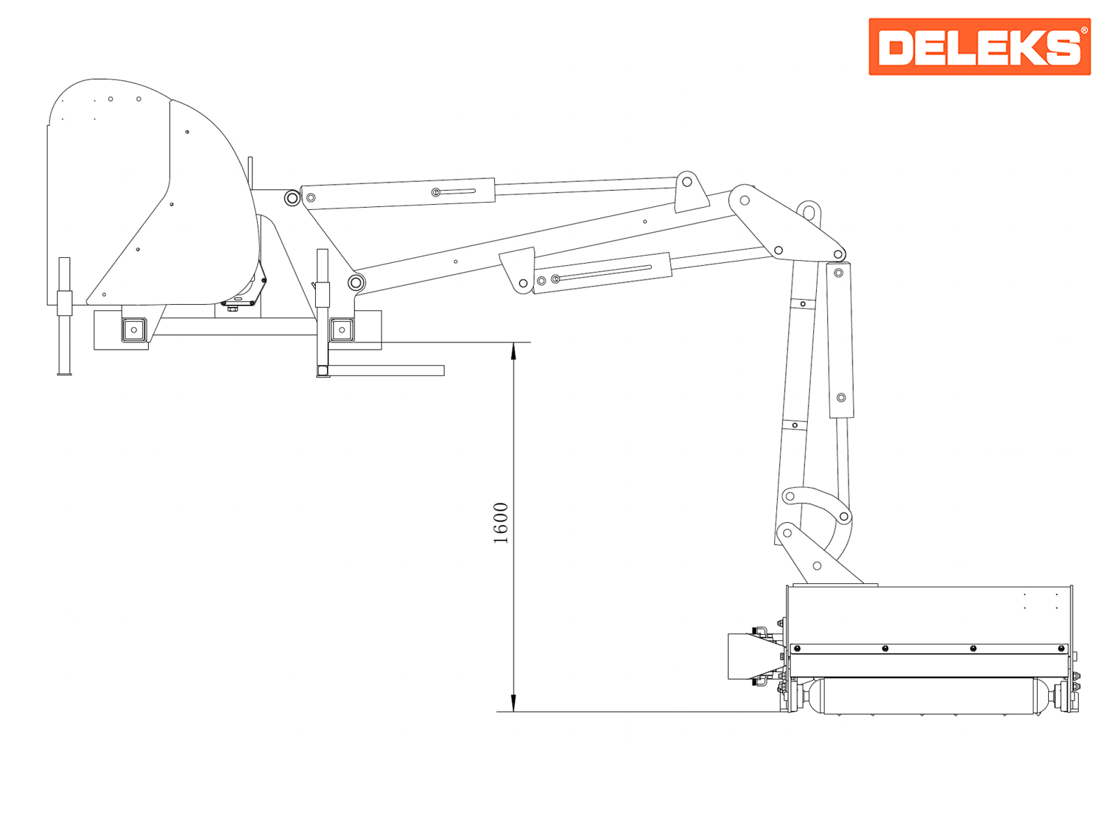 SLUITENHydraulische maaiarm - DELEKS® MERLO, kan worden uitgerust met een armklepelmaaier van 80-100-110 cm of een heggenschaar van 130-160 of 180 cm. Zijdelings gemonteerde armmaaier - Joystick.