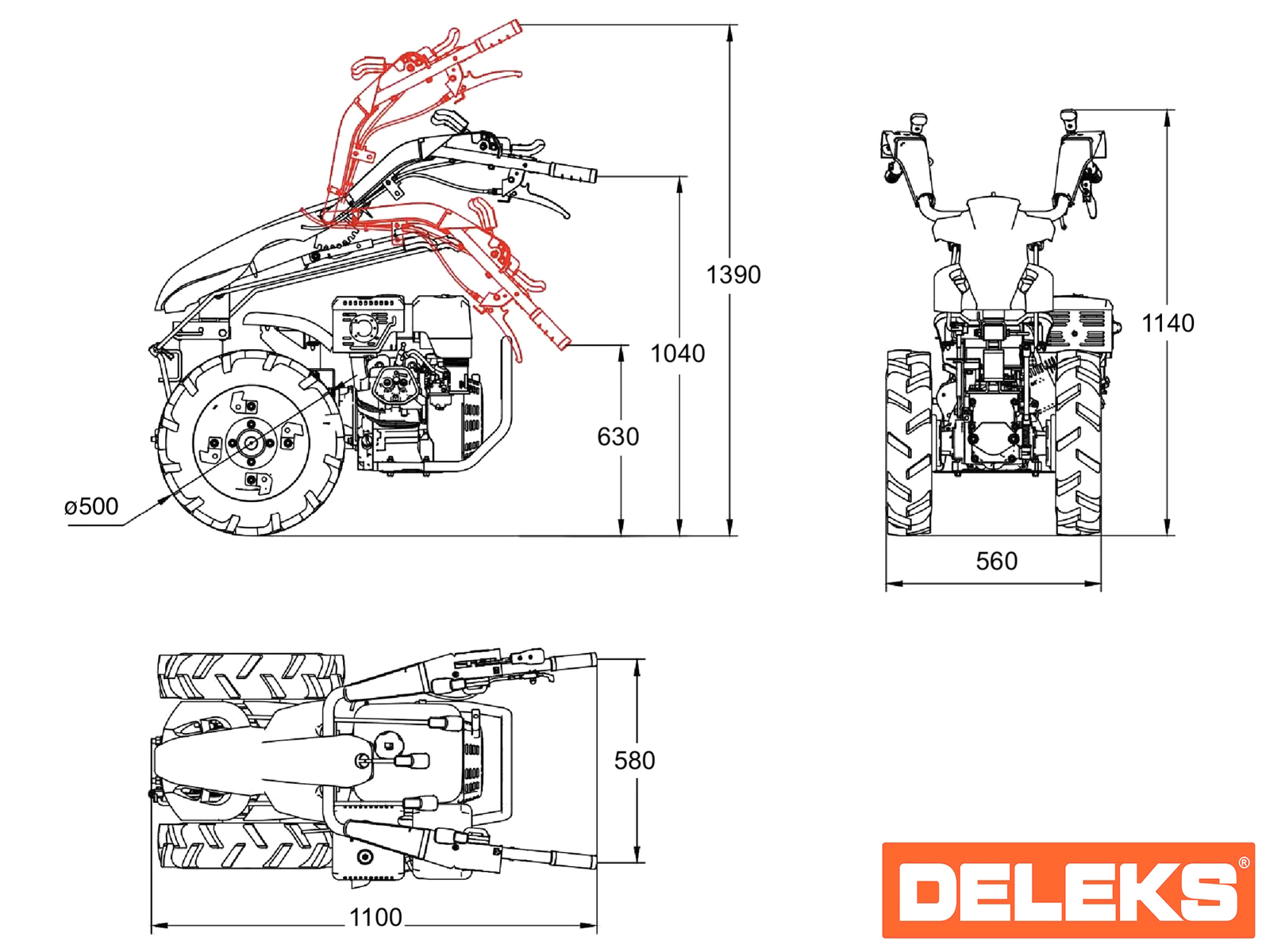 DELEKS® ZEUS tweewiel trekker, 14 pk Loncin benzinemotor, 3+2 versnellingsbak met snelwisselsysteem, diverse accessoires op aanvraag, Snelkoppeling (vrouwelijk) inbegrepen.
