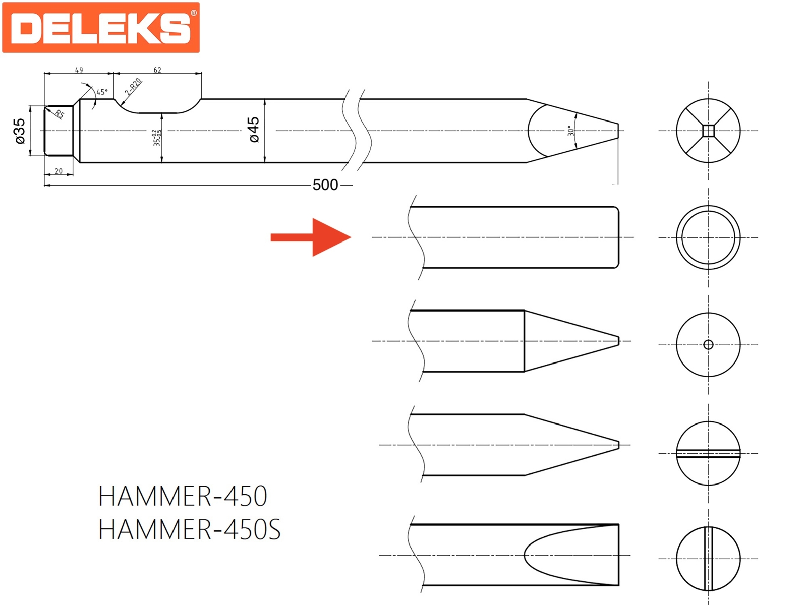 DELEKS® Outil pilon pour marteau hydraulique.