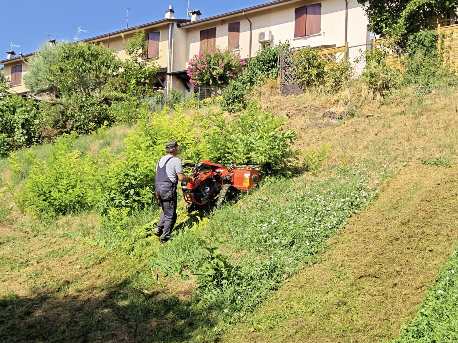 Mulchen van gras op hellingen en braakliggende terreinen.
