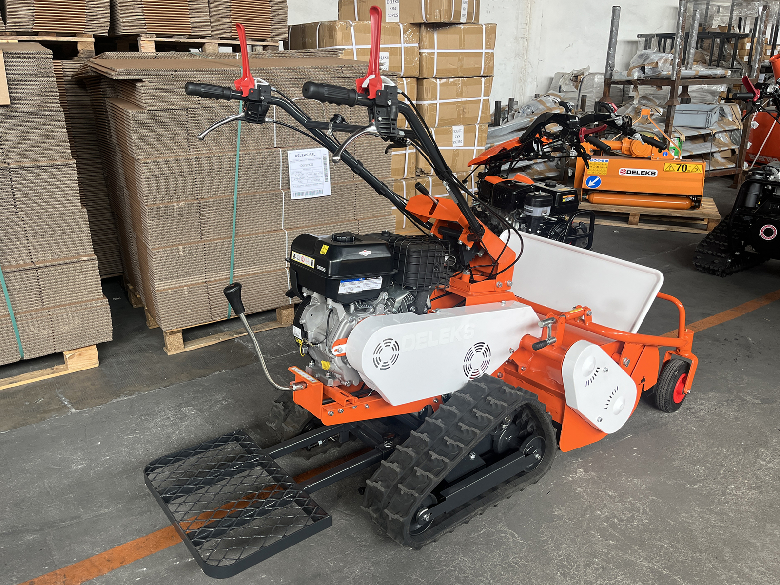 DELEKS® SMART-800-TR klepelmaaier op rupsbanden voor hellingen en heuvelachtig terrein, Briggs&Stratton 10pk, 306cc motor, 70cm maaibreedte, elektrische start met sleutel.