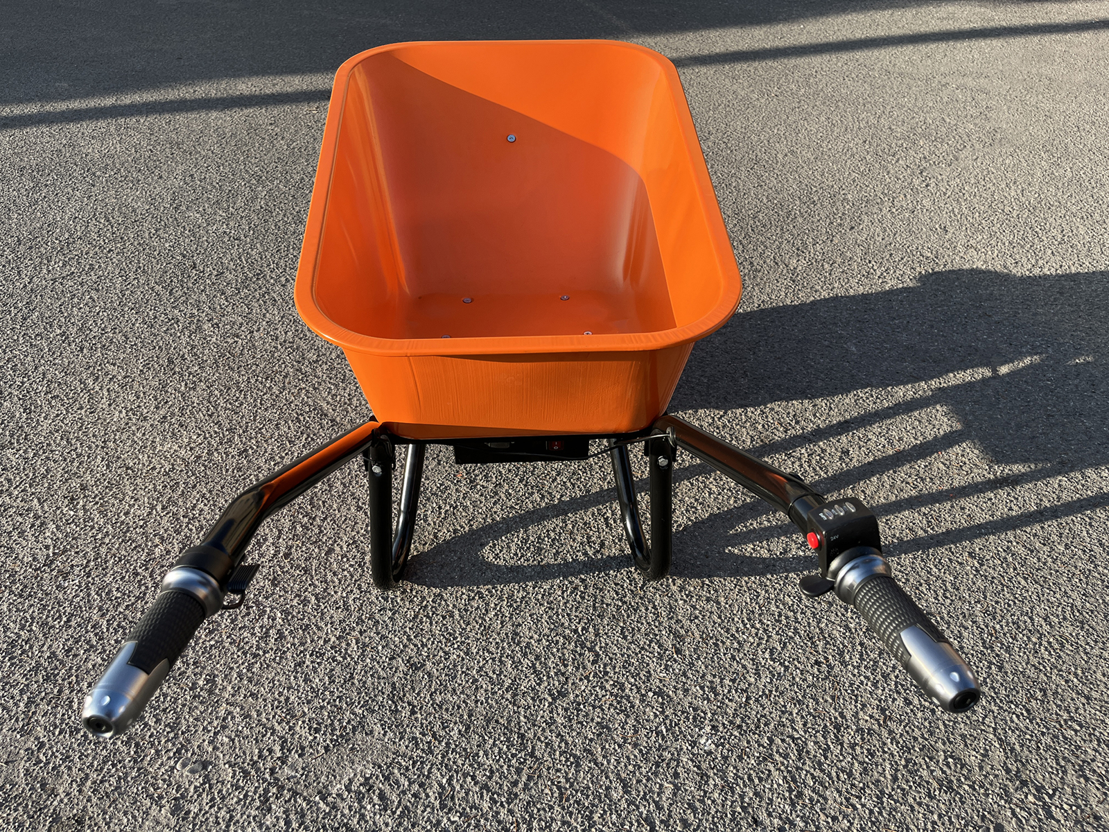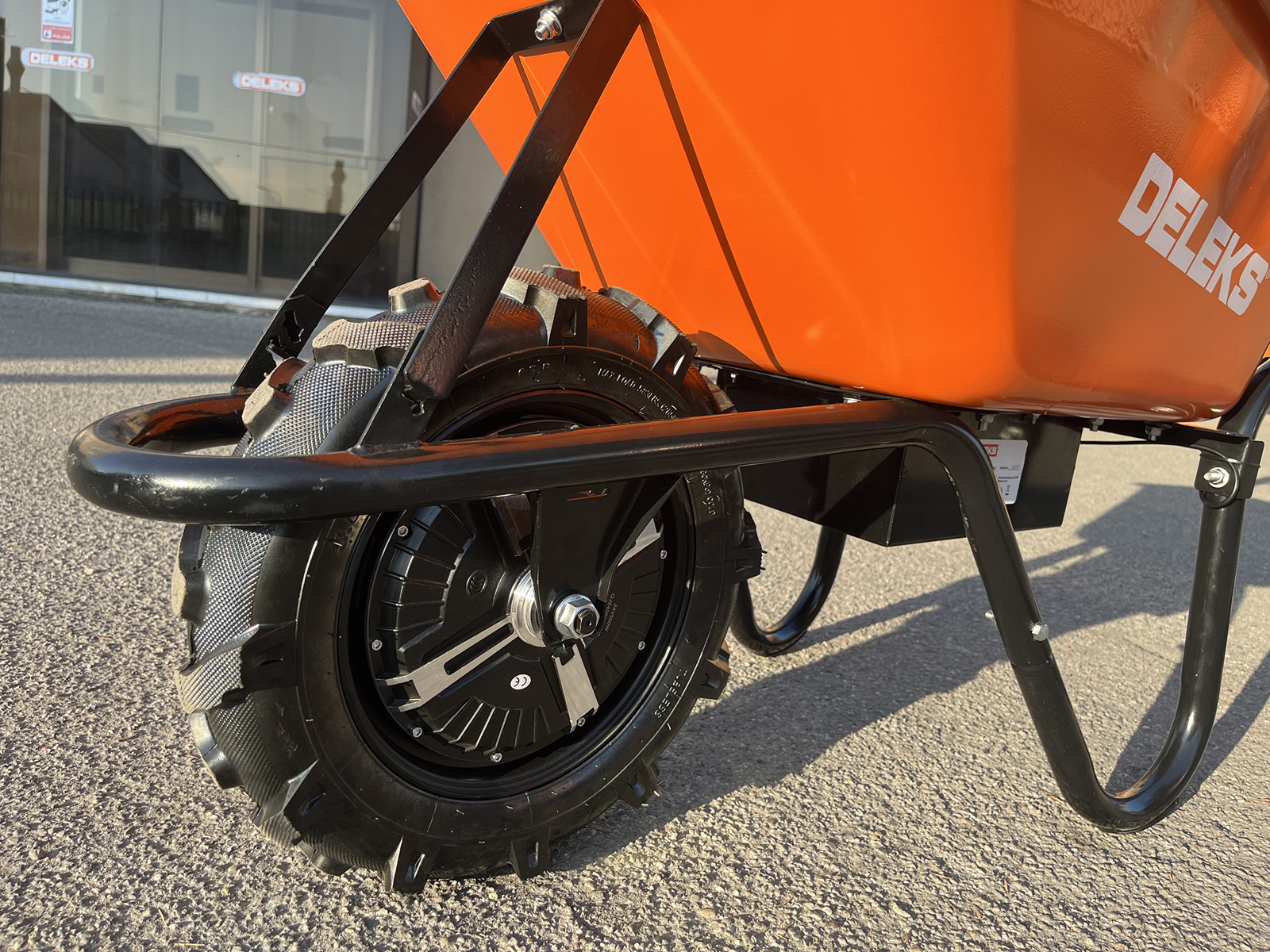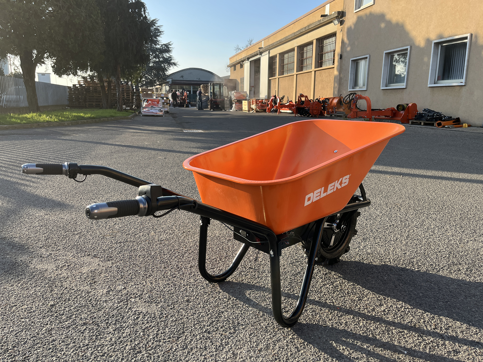 Brouette électrique DELEKS® XE150, autonomie 8 heures, benne métallique, charge 150kg.