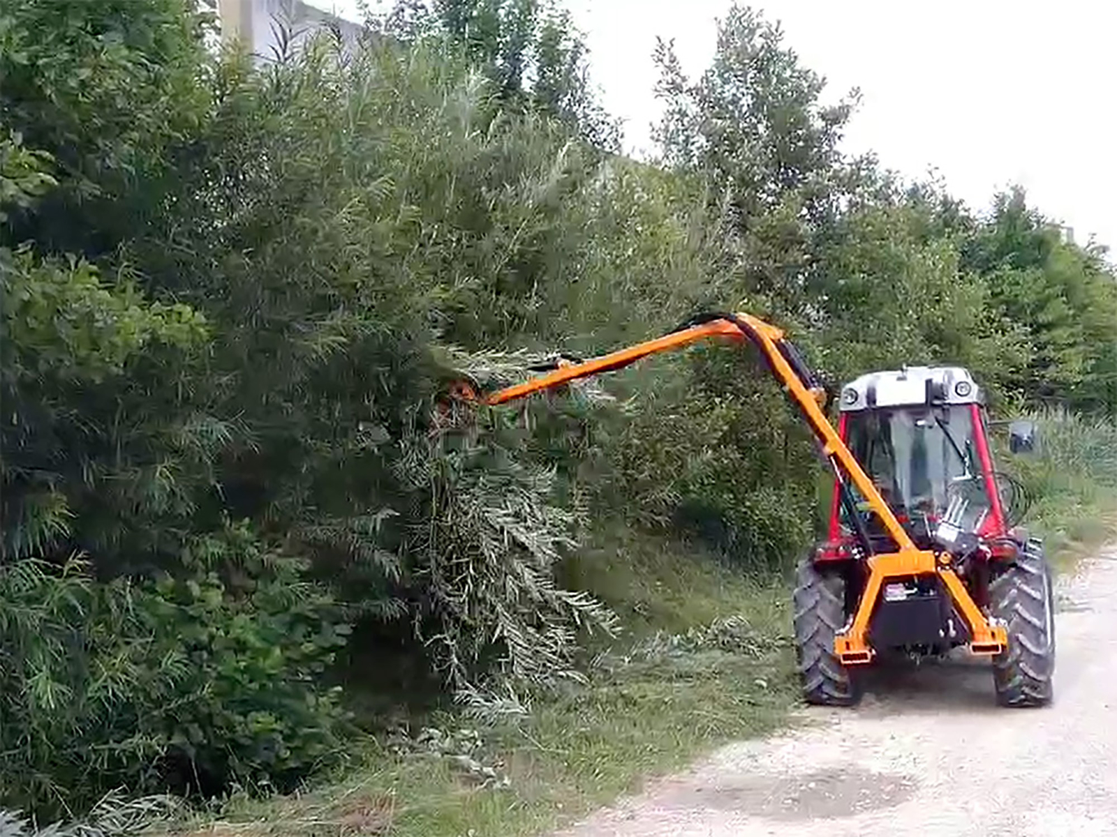 Snoeien van bomen en heggen, vooral op moeilijk bereikbare plaatsen. Dit maakt het snoeien van heggen volledig moeiteloos. Hij werkt aan beide kanten (rechts en links). Kan ook frontaal worden gebruikt. Voor tractoren van 20-60 pk, minimaal gewicht 800 kg.