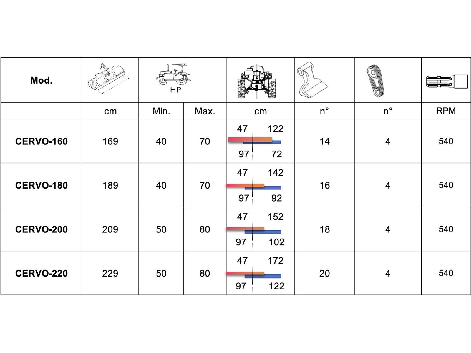 Geschikt voor tractoren met banden of rupsen van 70 - 100 pk. Kan gebruikt worden op vlak of hellend terrein. Met driepuntsophanging categorie 2. CE-gecertificeerd.