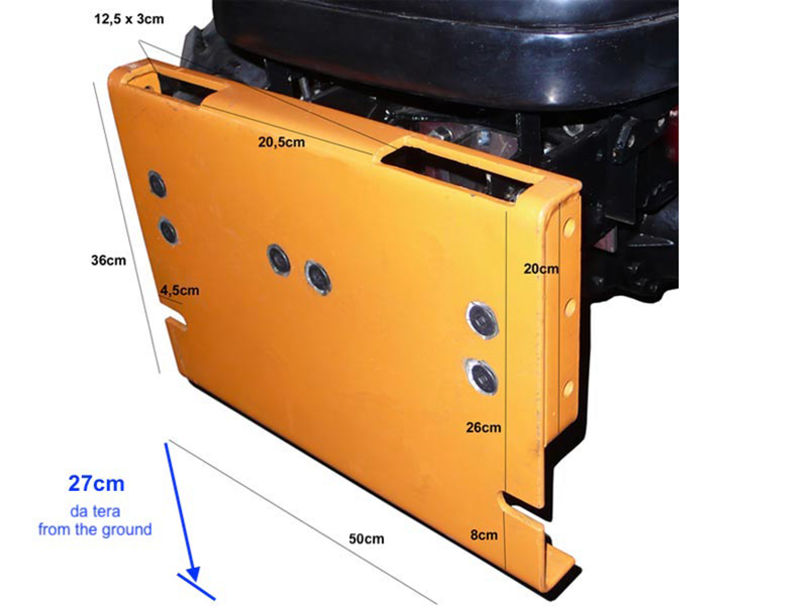 The plate fitting is removable and replaceable with a 3-point hitch, EURO or Skid steer loaders.