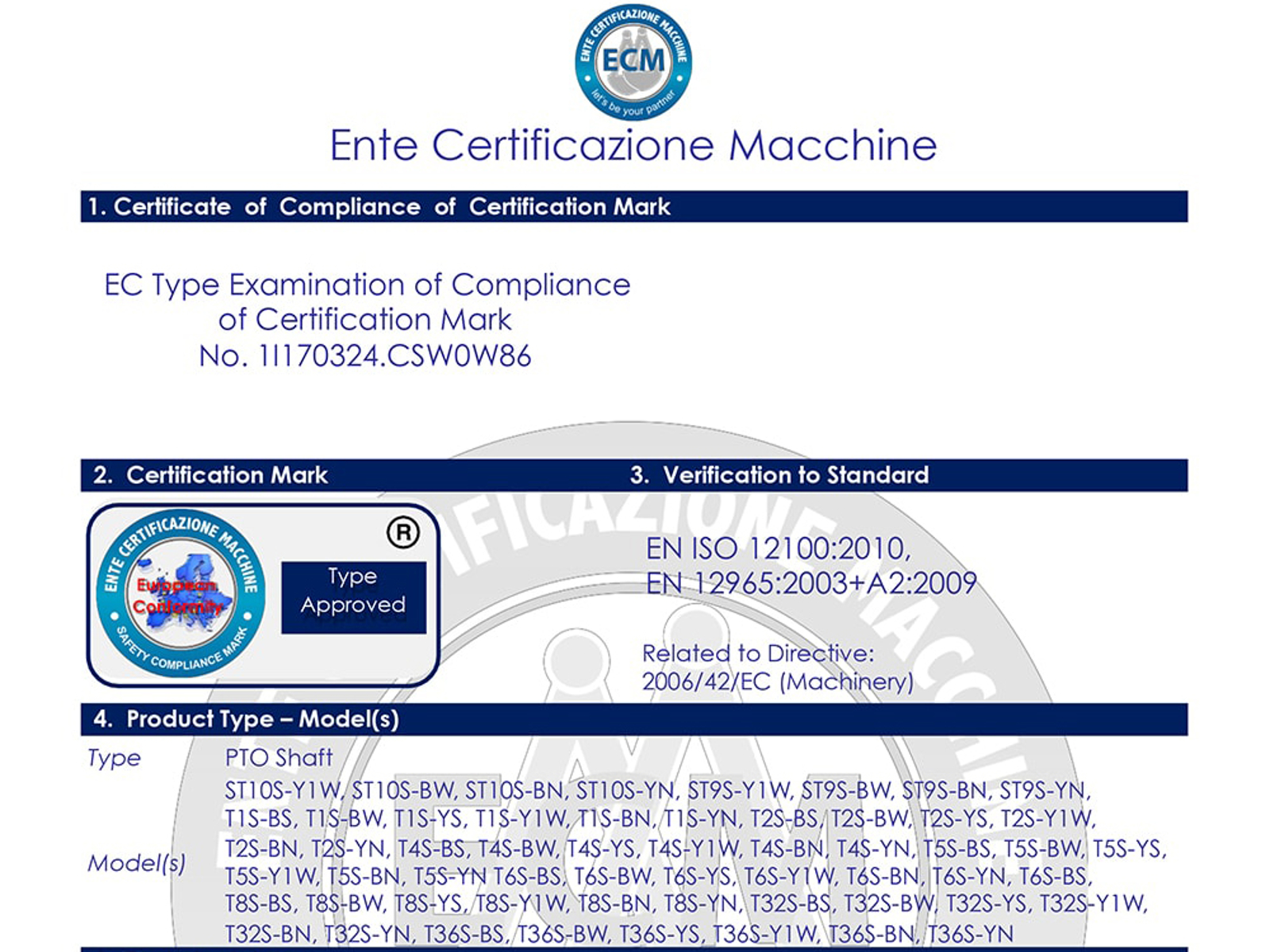 Gecertificeerd door ECM Ente Certificazione Macchine © (Bologna - Italië)