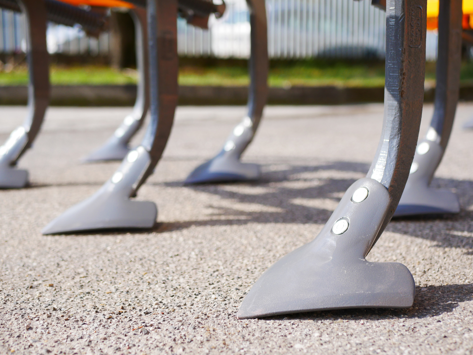 Verwisselbare ploegscharen van gehard staal.