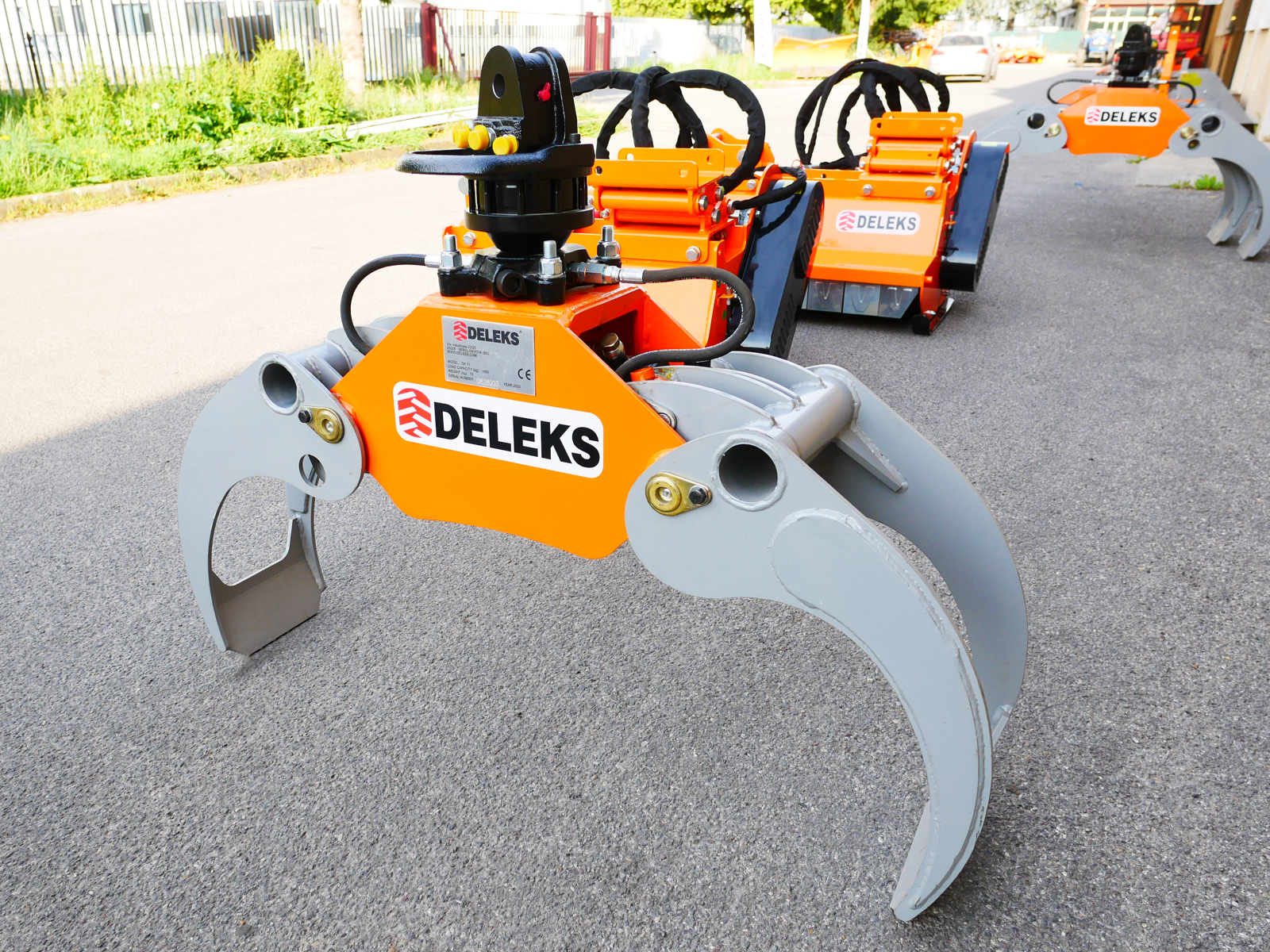 Houtgrijper, houtklem voor kranen en minigraafmachines - DELEKS® DK-11C + Rotor Lombarda Ingranaggi GR-30F.