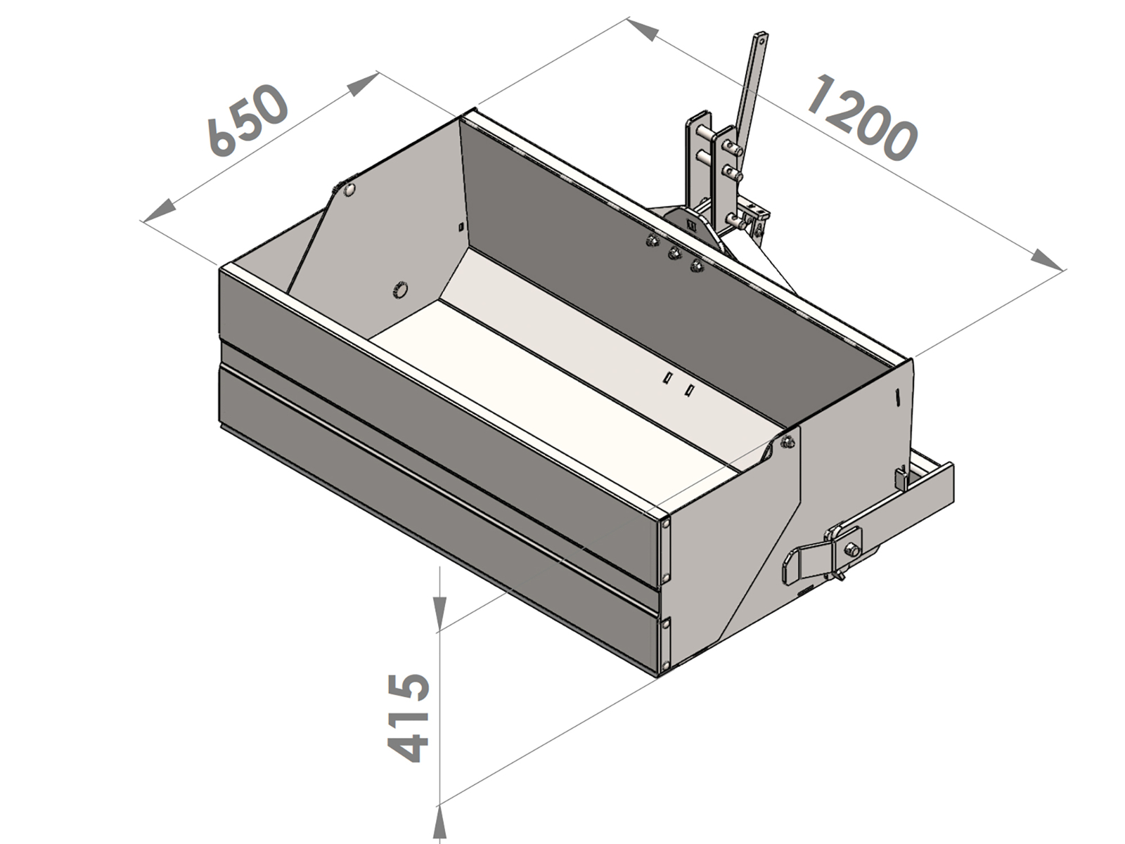 Kiepen, laden en sluiten van de bak is mogelijk vanaf de tractor.