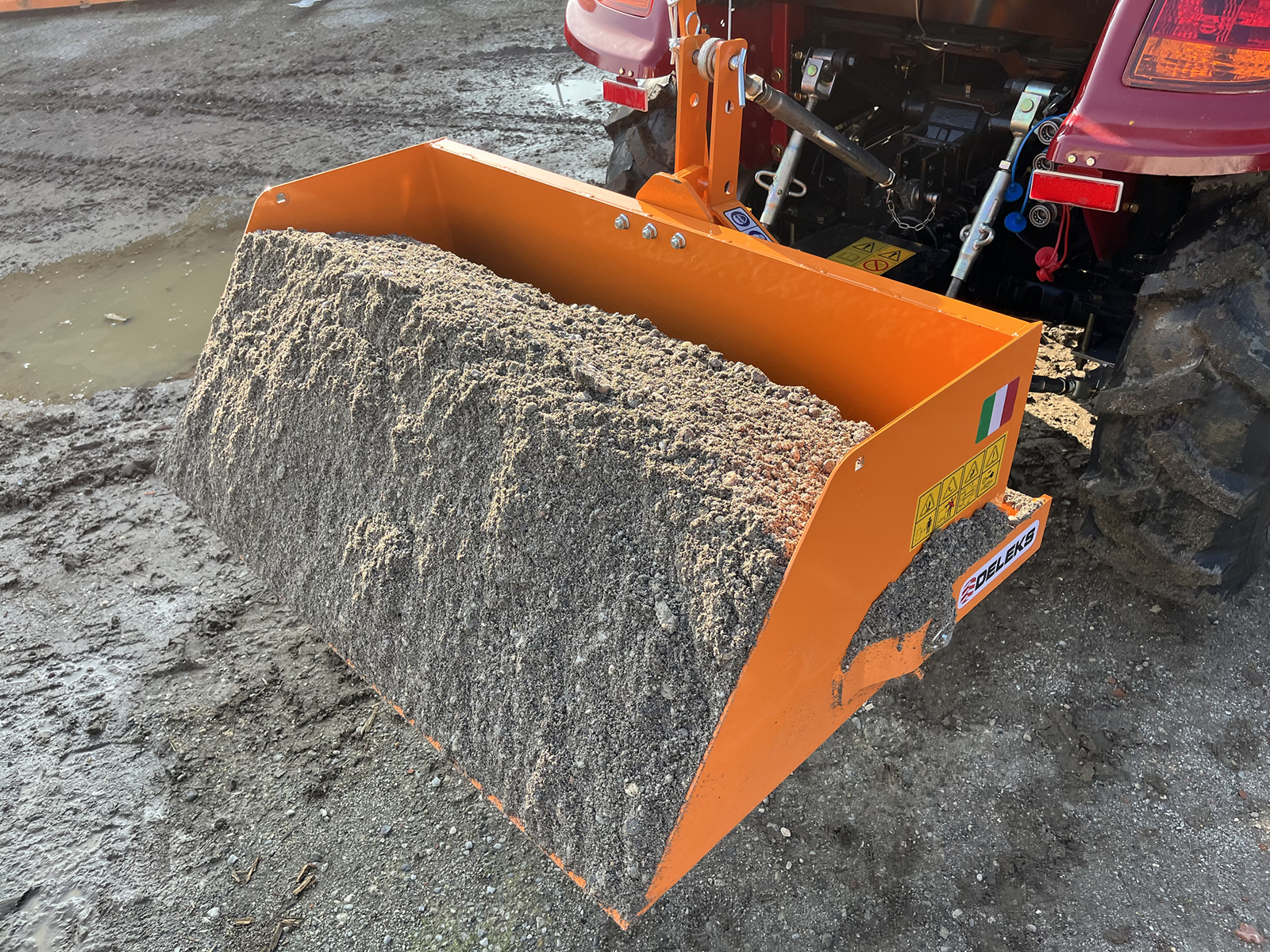 Mechanische grondbak "Made in Italy" voor het laden en vervoeren van diverse materialen zoals grind, turf of hout, maar ook voor het sneeuwruimen en egaliseren van bodems van diverse aard.