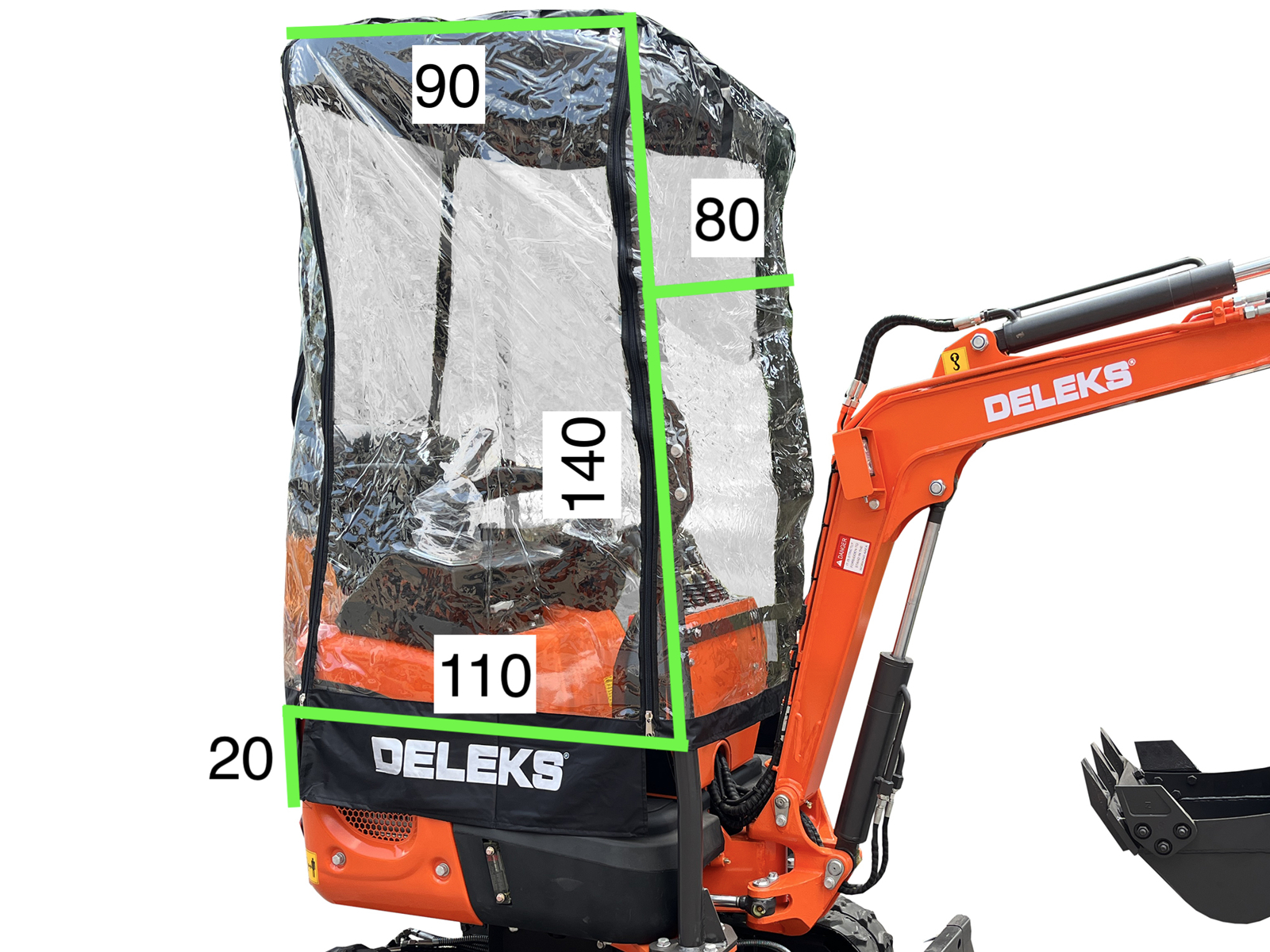 SLUITENOf het weer nu meewerkt of niet - de universele regen- en windhoes is de perfecte oplossing voor de DELEKS® M90-M100-M100se (XN10-8 - XN12-8 - XN12-9) minigraver.